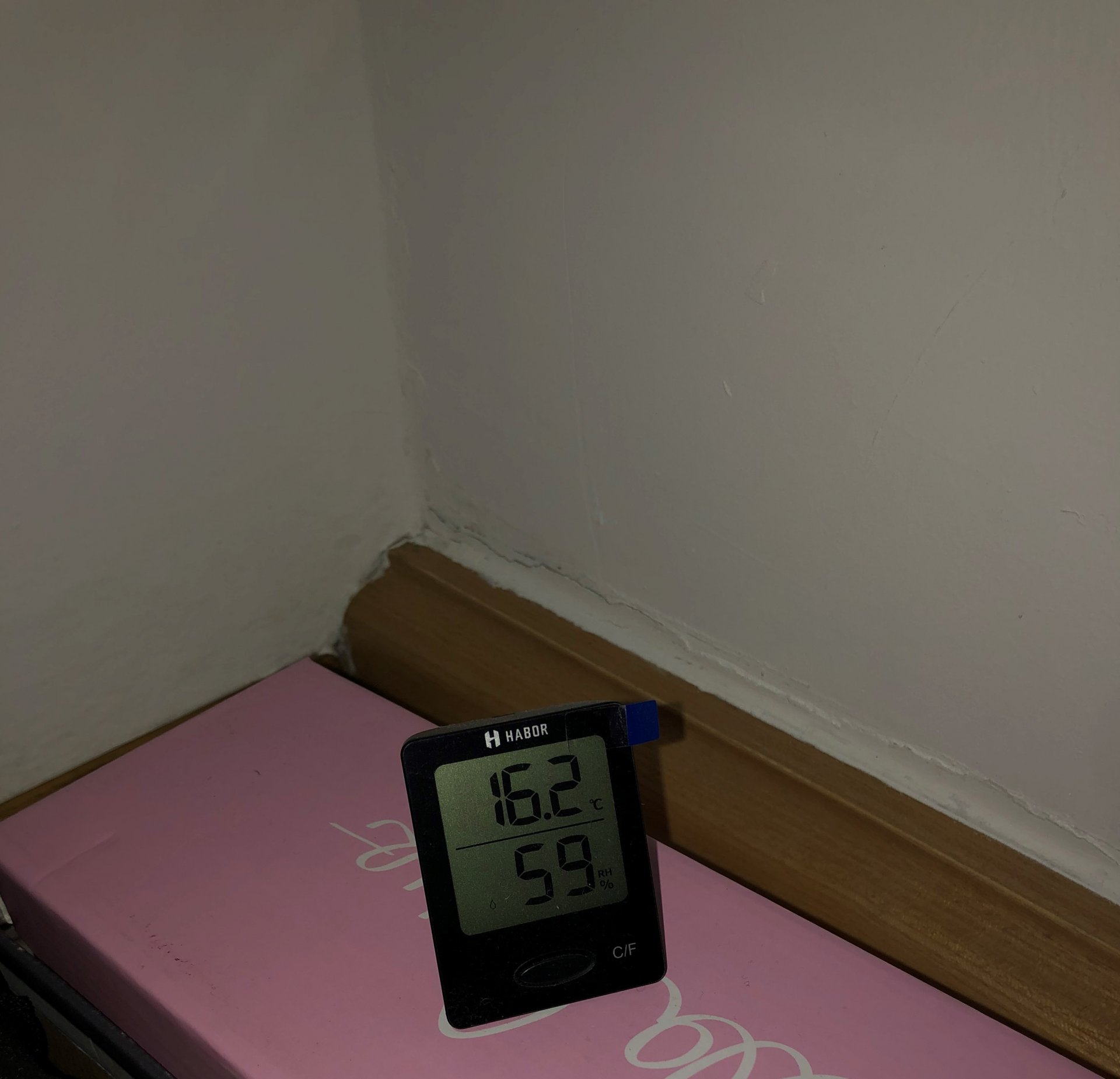 Während 3/4 des Schlafzimmers Temperaturen um die 18-20° haben, ist der Ausseneckbereich ganze 3-4° kälter (laut Hygrometer).