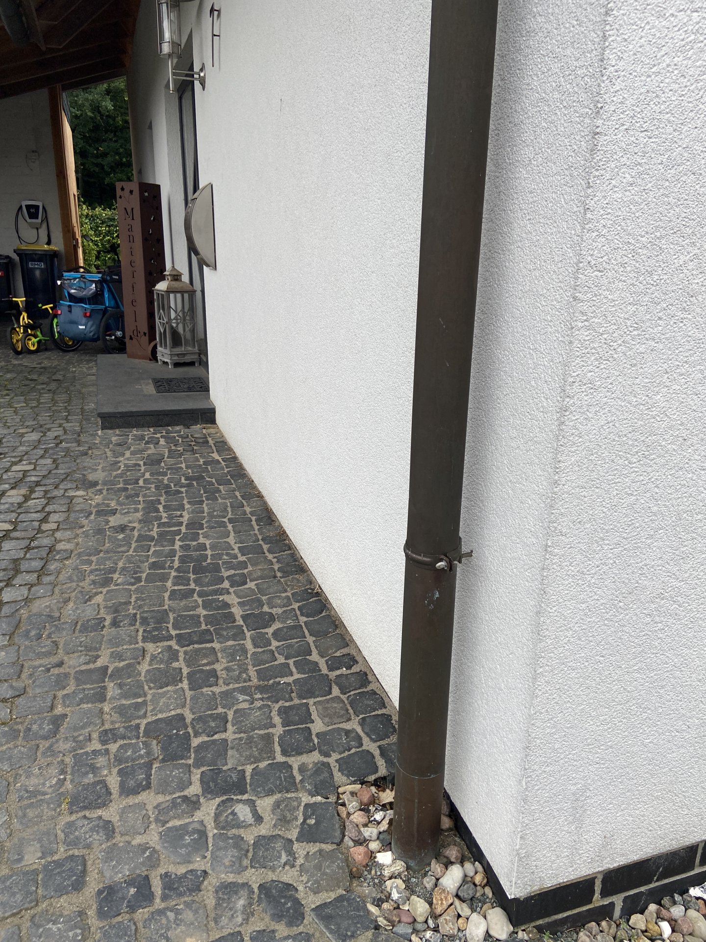 Entwässerung läuft ca. Mittig über die Auffahrt parallel zur Hauswand!