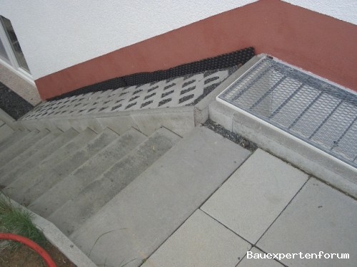 Diskutiere feuchte Kellerwand im Abdichtungen im Kellerbereich Forum im Bereich Neubau; Hier die Treppe, um sich ein Bild über den Aufwand des Aufgrabens des Lichtschachtes machen zu können: [img]