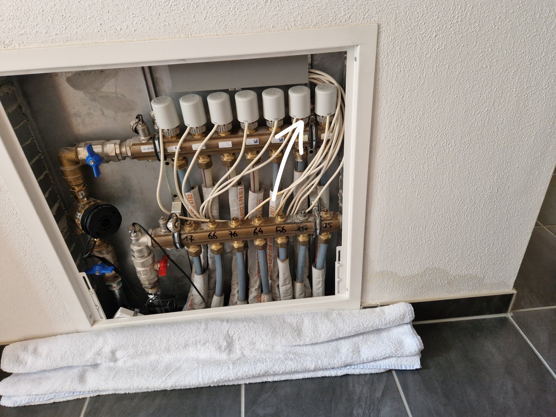 Diskutiere Feuchte Wand neben Verteilerkasten FBH im Heizung 2 Forum im Bereich Haustechnik; Hallo an alle! Darf ich euch mal um Rat bitten? Heute morgen habe ich den feuchten Fleck an der Wand neben dem Verteilerkasten der FBH gesehen...