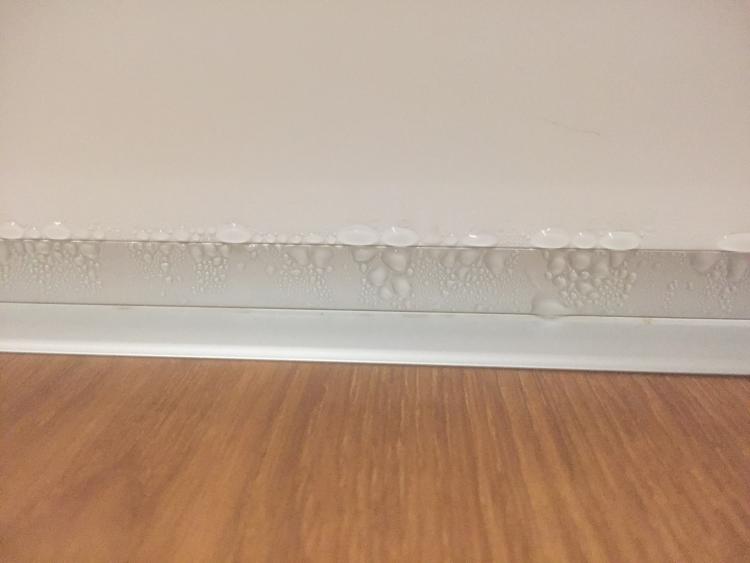 Mir kommt das ganze aber nicht normal vor bzw vermute ich das die untere Dämmung am Fenster vergessen wurde, schaut euch mal die Feuchtigkeit auf dem Bild an: