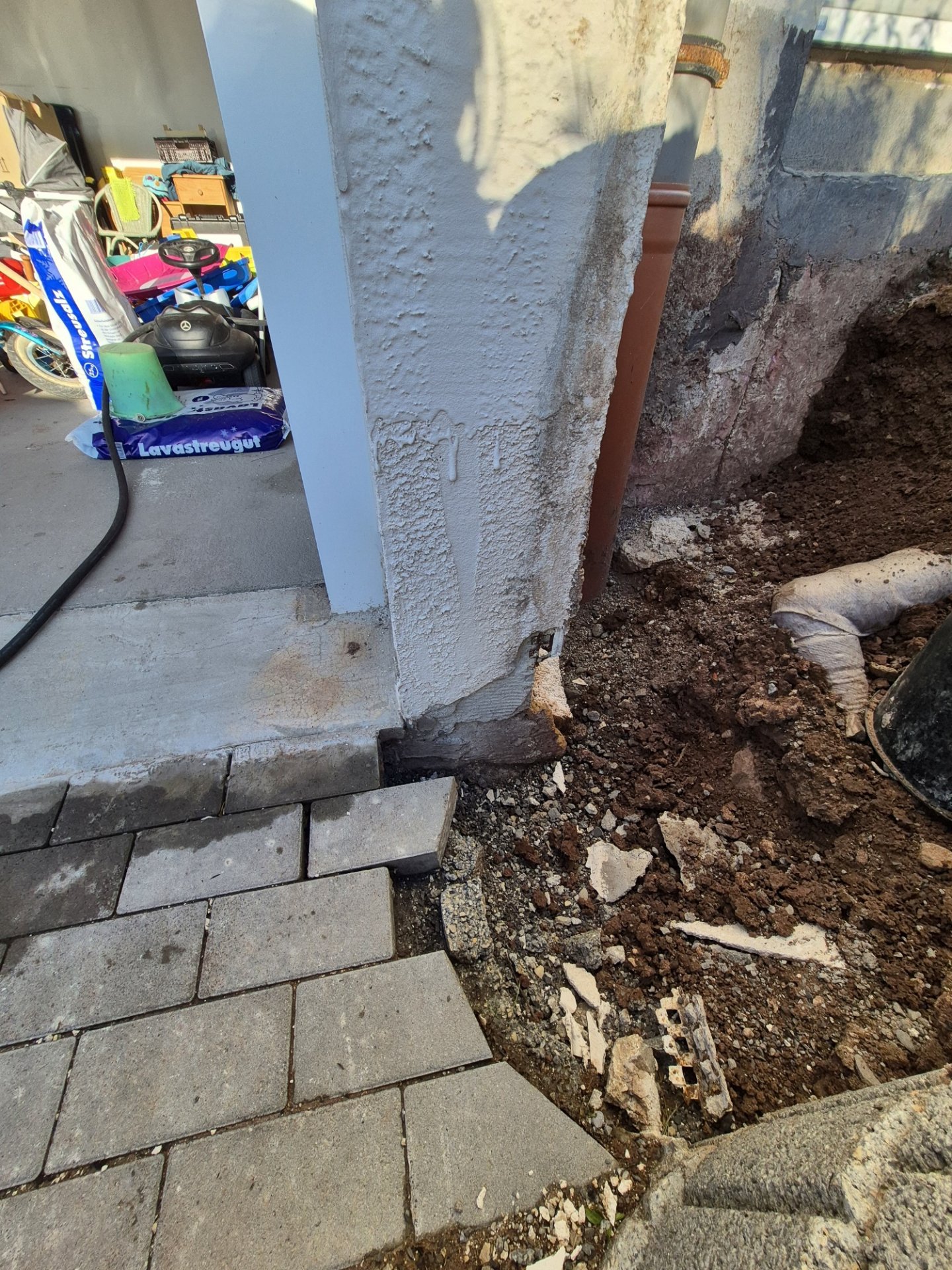 Idee? Woher kommt die Feuchtigkeit am Sockelputz?