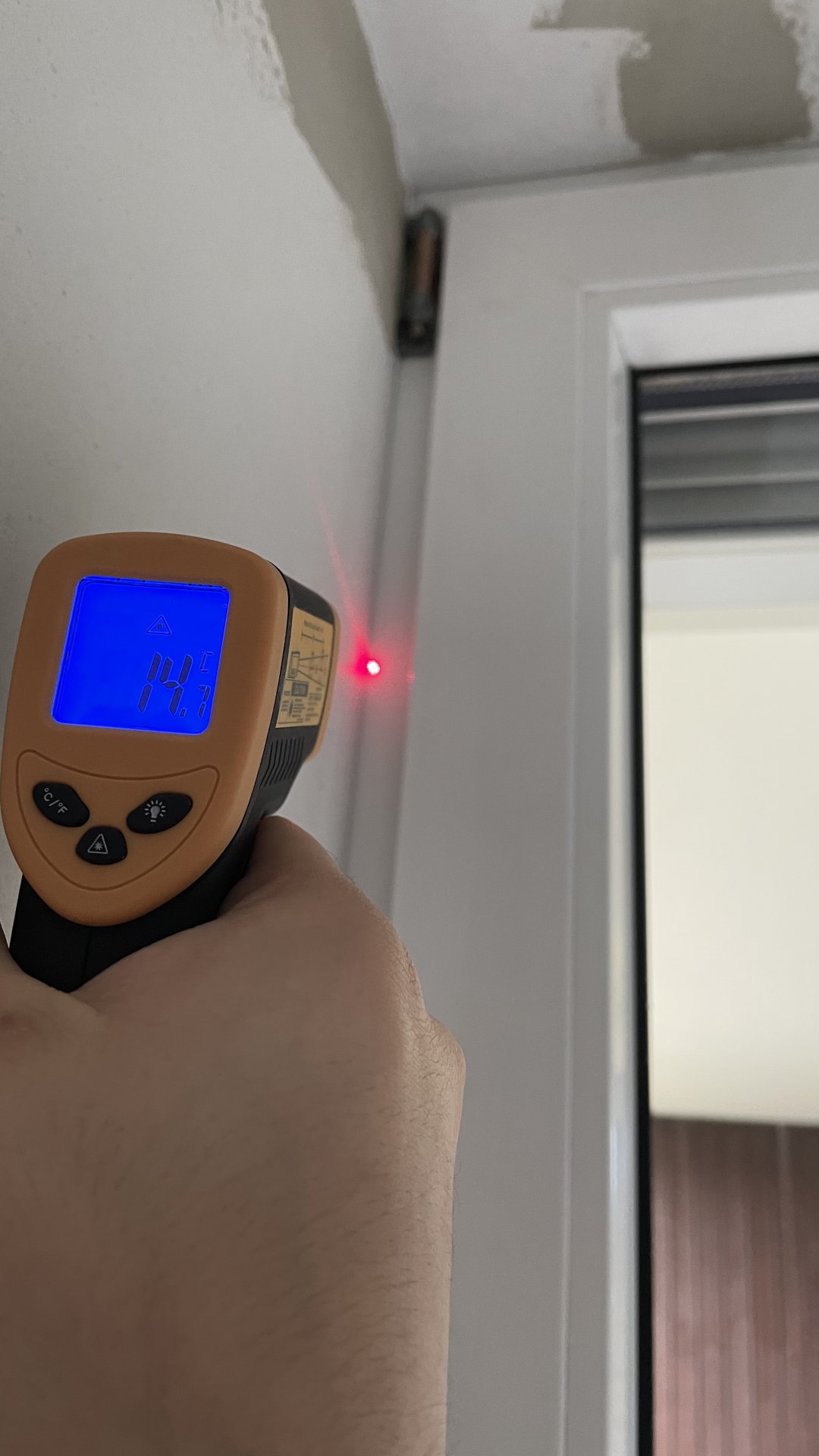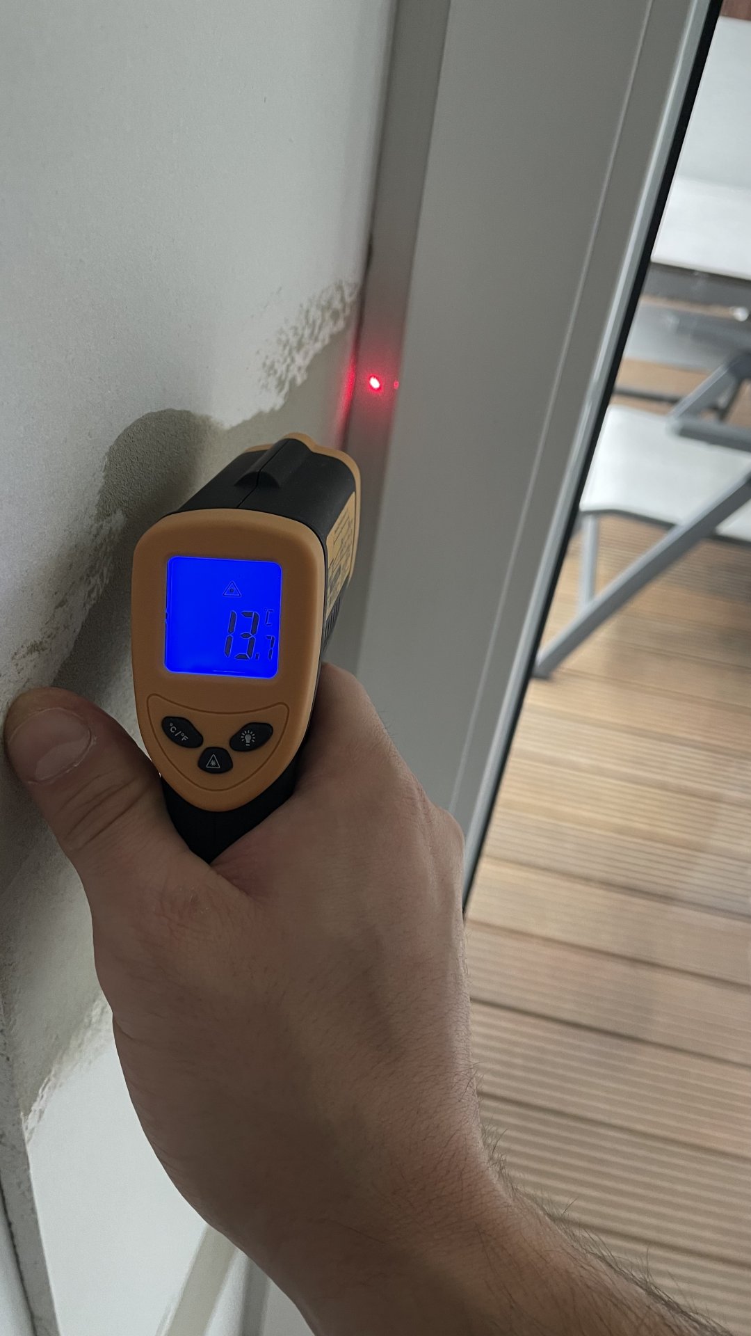 Die Temperatur am Fensterrahmen ist allerdings deutlich niedriger bei 4 grad draußen und 20,3 innen.