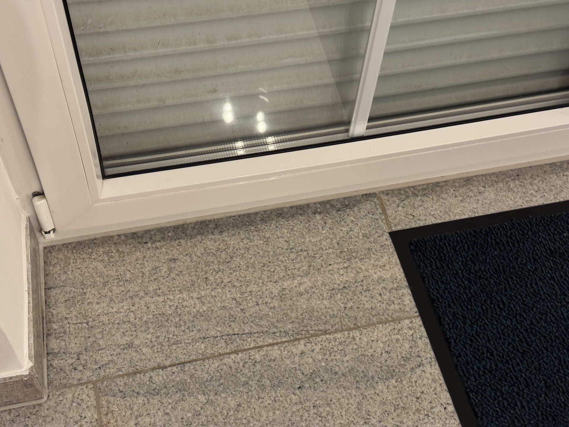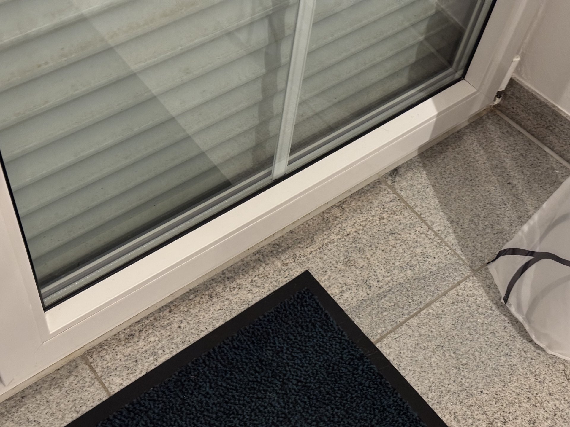 Diskutiere Feuchtigkeit an der Terrassentür innen im Fenster/Türen Forum im Bereich Neubau; Wir haben in einem Zimmer - Ausrichtung Westen - an der Terrassentür unten am Rahmen offensichtlich Feuchtigkeit, da die Fliesen dunkler gefärbt...