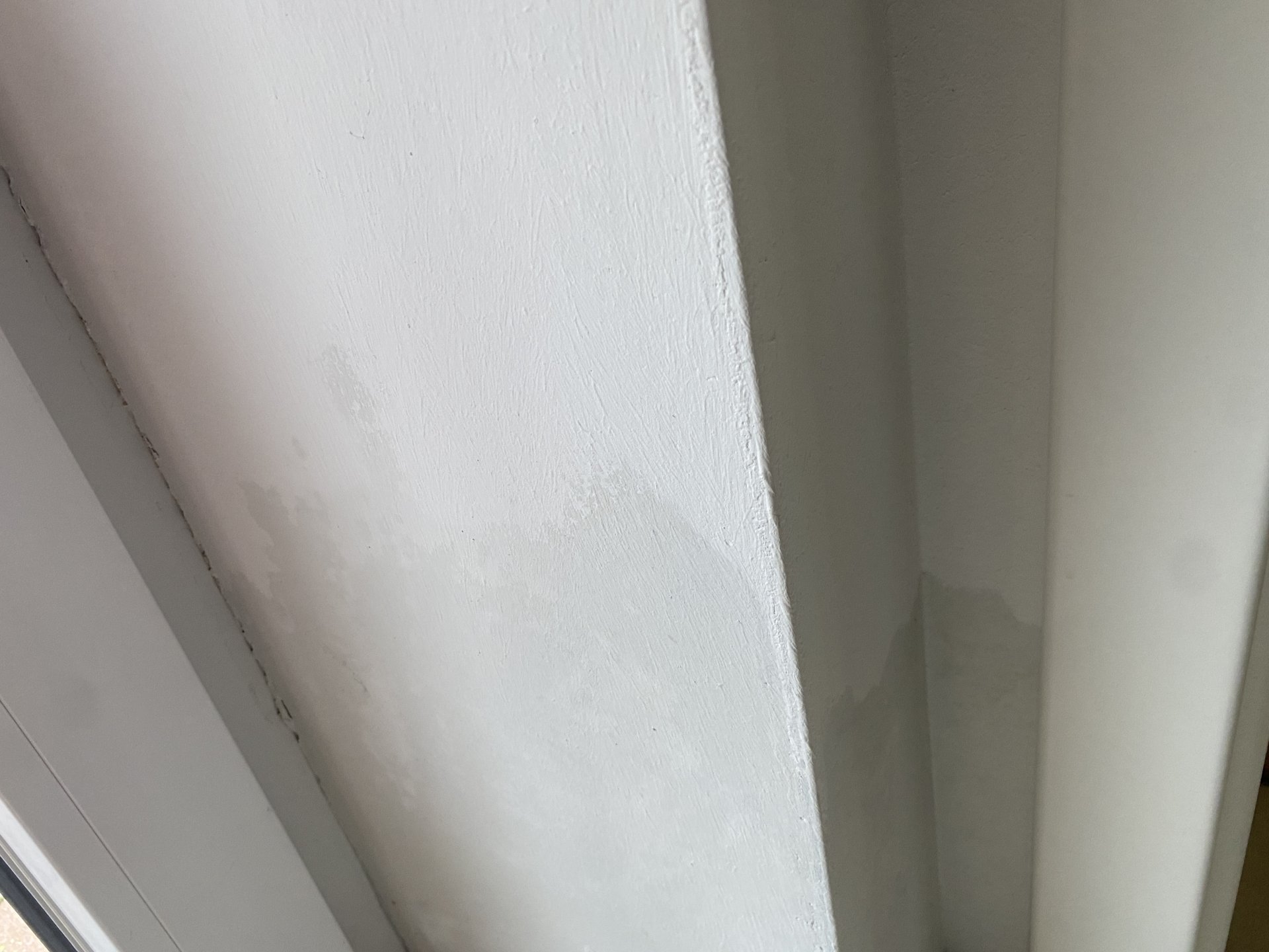 Diskutiere Feuchtigkeit Fensterstürze im Fenster/Türen Forum im Bereich Neubau; Hi, wir wohnen seit zwei Jahren in einem Neubau, nun entstehen bei Schlagregen Wasserflecken in/ unter den Fensterbereichen (siehe Fotos)...