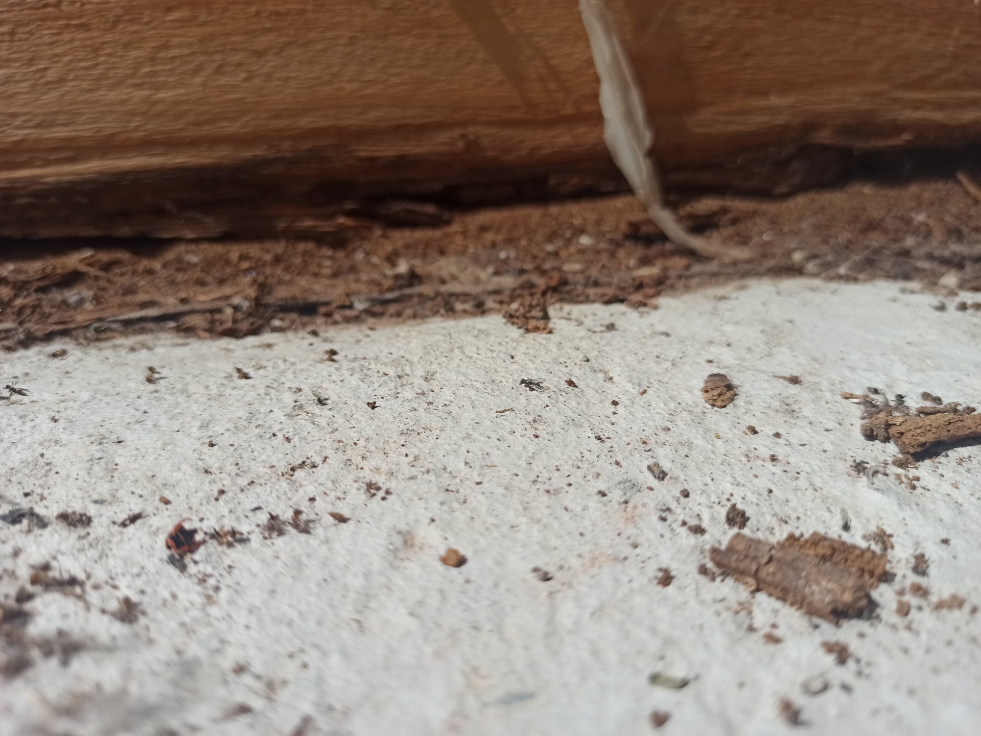 Wir haben den Estrich entfernt und dabei entdeckt, dass das Holz, auf dem der Wintergarten steht, an einer Ecke stark beschädigt ist – offenbar durch Feuchtigkeit, die von außen hinter die Verklinkerung eingedrungen ist.