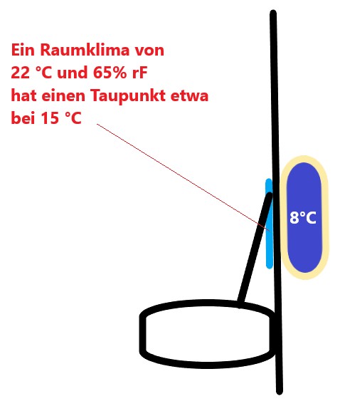 Da muss schon eine Bauteiltemperatur die Taupunkttemperatur des Raumklimas unterschreiten.