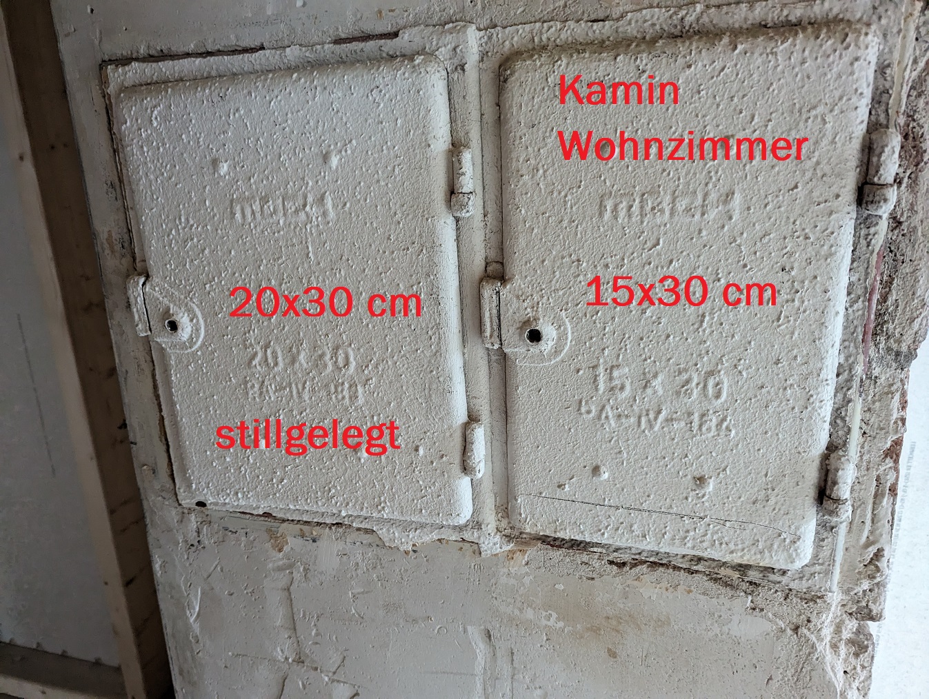 Am schönsten wäre es wenn die Türen verputzt und flächenbündig sein könnten. Ich finde da jetzt aber nichts in unserem Format von 20x30 (stillgelegter Ofen früher, zukünftig vielleicht Zuluft für Kaminofen) und 15x30 cm (Abluft Kaminofen Wohnzimmer).