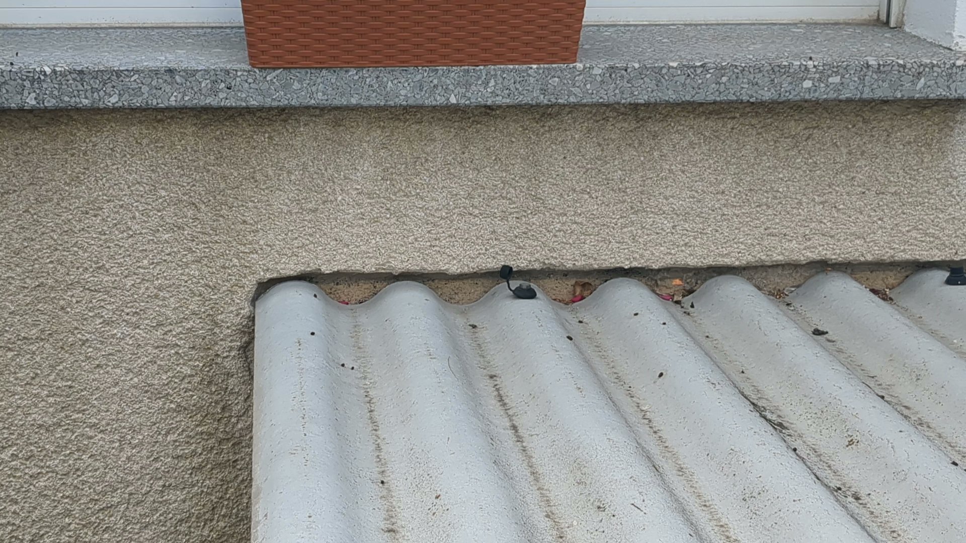 Das Mehrfamlienhaushaus liegt an einer viel befahrenden Ortseingangsstraße. Das es nur Schmutz von Fahrzeugen wie über Jahre ist glaube ich nicht.