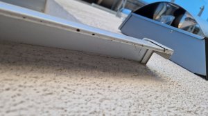 Ein weiterer Punkt der mich grübeln lässt ist die Befestigung der Alu-Fensterbank am Fenster (Fensterbankanschlussprofil). Eigentlich sollte die silbergraue Alu-Fensterbank hinten hochgefaltet sein und mit den kleinen Schrauben an das Fenster geschraubt worden sein. Warum ist da statt dessen ein weißer Streifen angeschraubt? Deko? Das sollte ein Fensterbauer mal abschrauben und dahinter gucken ob der Anschluss dahinter fachgerecht aufgekantet und dicht ist.