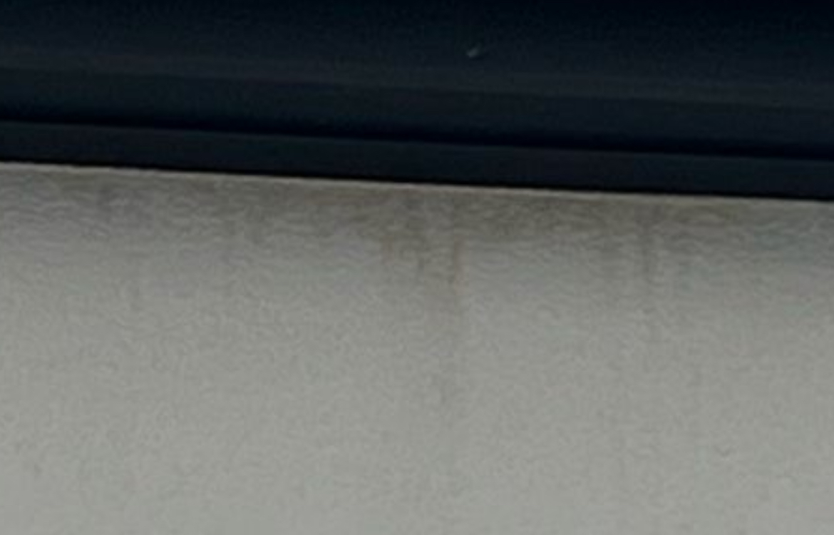 Flecken zw. Dachunterseite (außen) und Außenputz (EFH, 5J) – Schmutz, Algen, Schimmel?