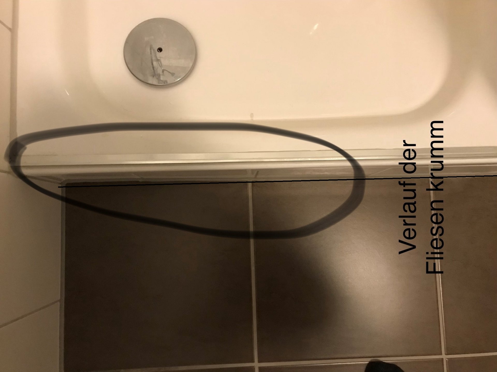 Diskutiere Fliesen schief im Estrich und Bodenbeläge Forum im Bereich Neubau; Gute Abend, ich komme in der Diskussion mit dem GU nicht weiter. Dieser ist der Meinung, dass die Fliesen zwischen Duschwanne und Boden noch in...