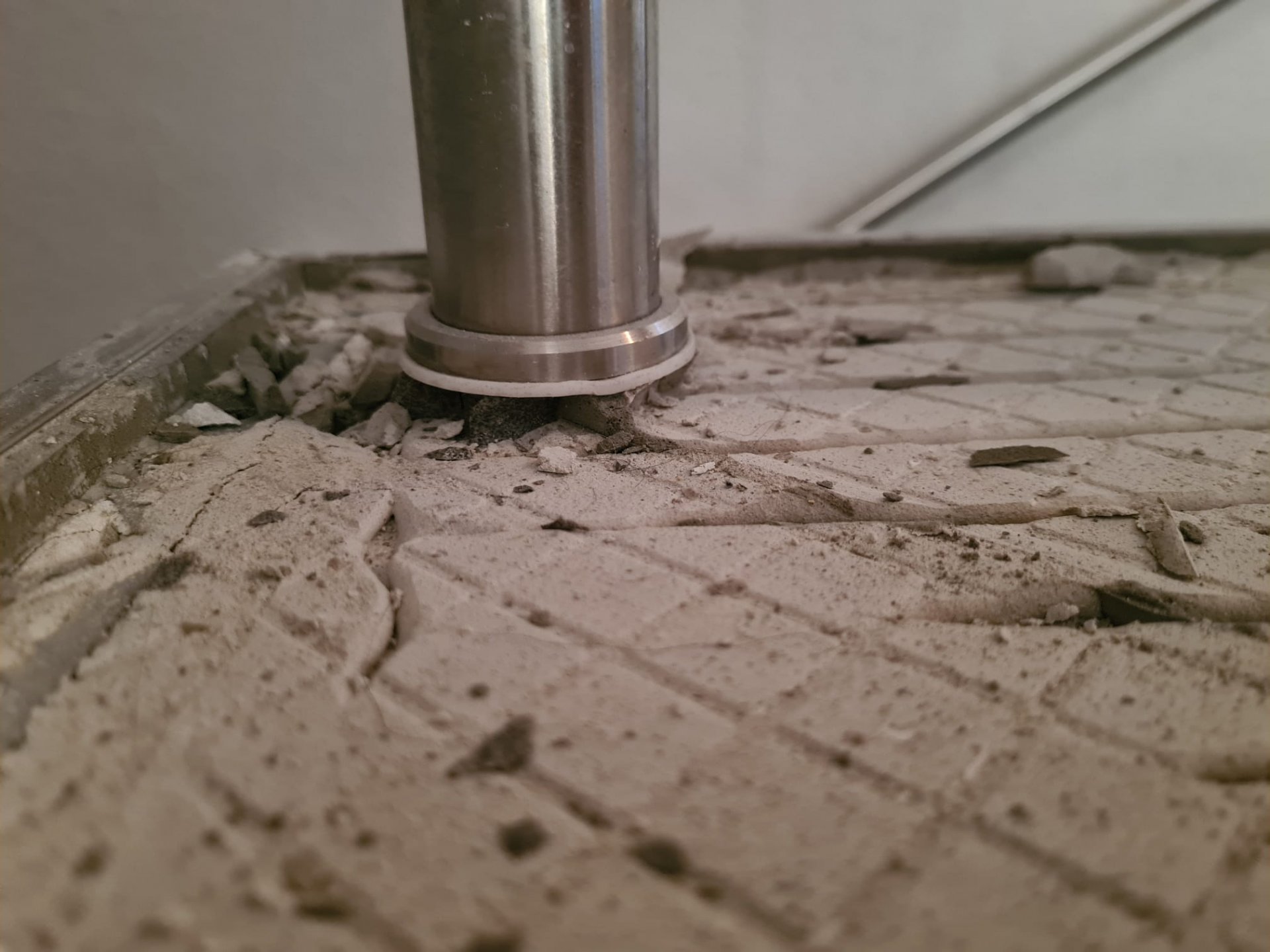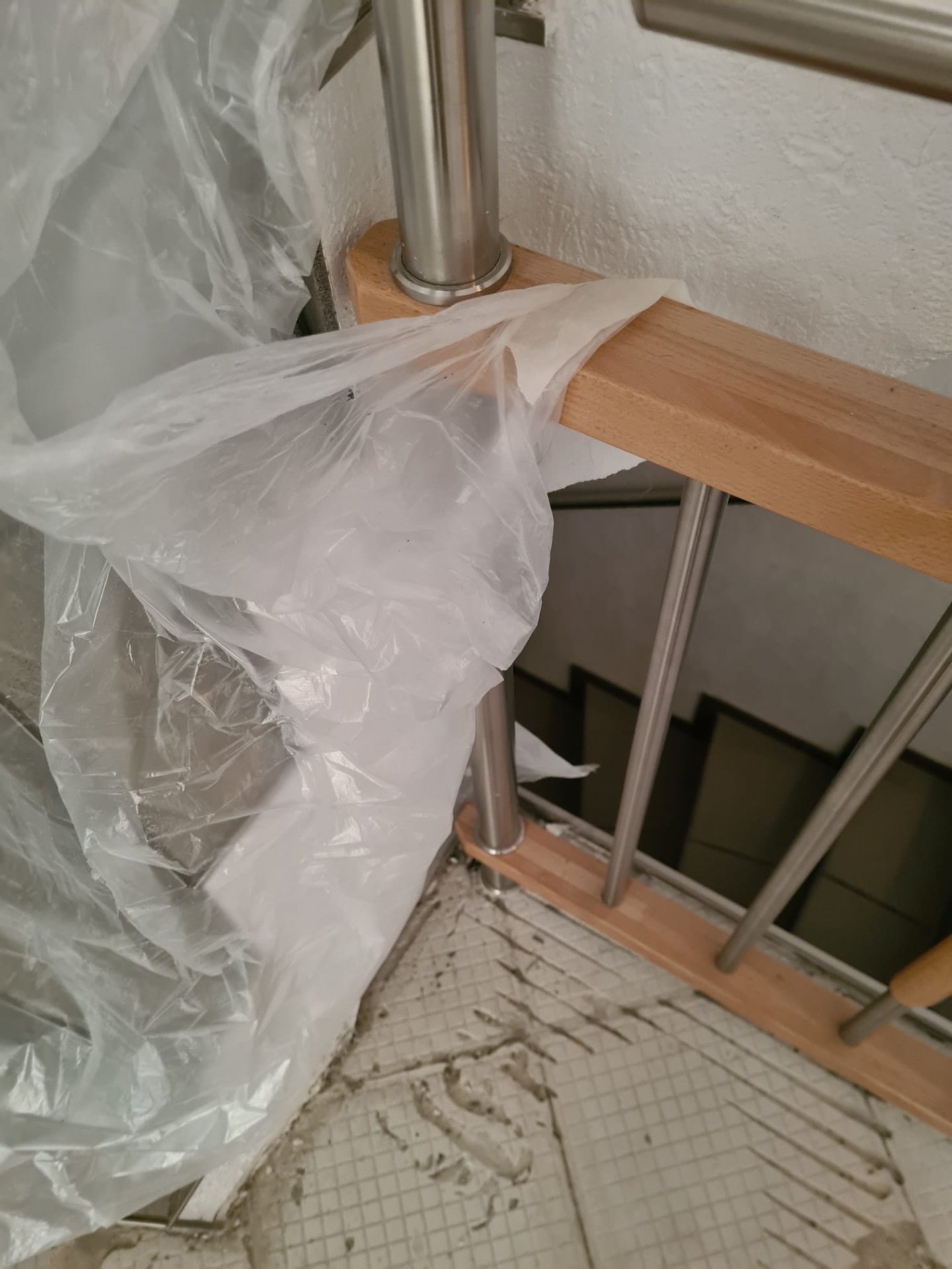 Fliesen unter Treppengeländer, Demontage