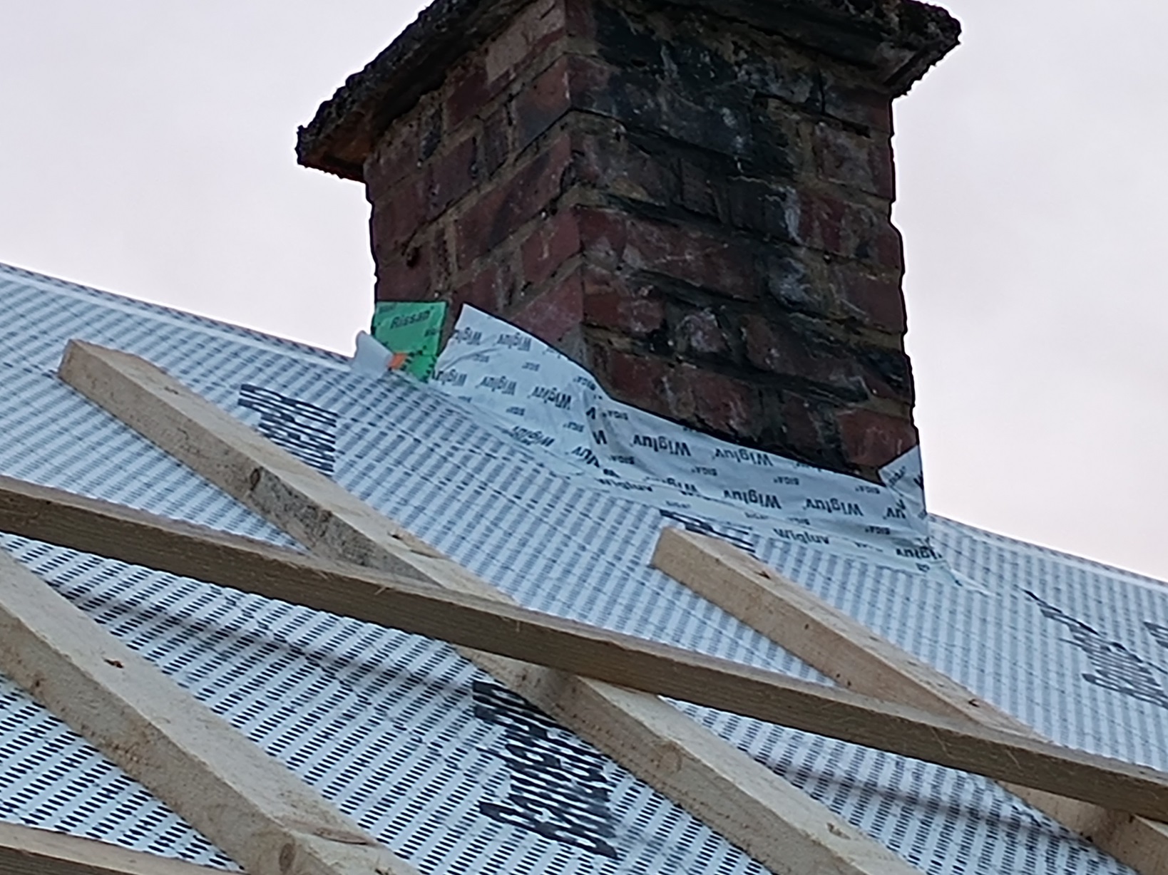• Nachdem Dampfbremse und Dämmung aufgebracht waren, kamen einige sehr regenreiche Tage. Dabei konnte ich feststellen, dass nicht alles Wasser über das Traufblech ablief sondern teilweise an den Sparren heruntertropfte.