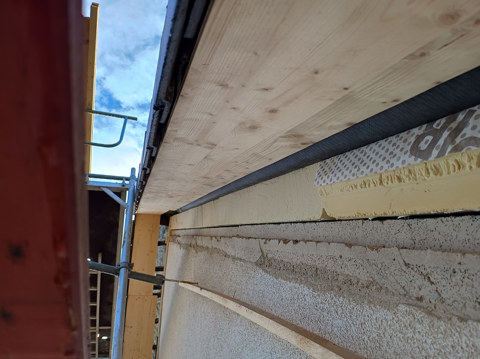 Die offenen Seiten wurden so hergestellt, da ja davon ausgegangen wurde, dass umgehend nach Dachdämmung die Fassadendämmung seitlich dagegen verlegt wird. Das wird so jetzt ja mindestens über den Winter stehen bleiben. Ich hoffe auch dies stellt kein Problem dar.