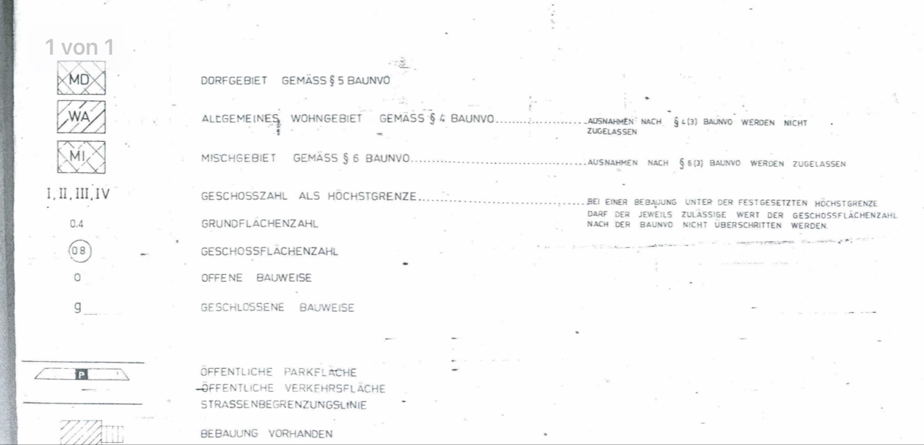 Diskutiere Frage zum Bebauungsplan im Baugesuch, Baugenehmigung Forum im Bereich Rund um den Bau; Hallo zusammen, in meinem B-Plan aus 1971 stehen 3 statt 2 Zahlen (siehe Grafik). Ich gehe aus von: 0,4 GRZ 0,8 GFZ Was sagt die zweite 0,4 aus?...