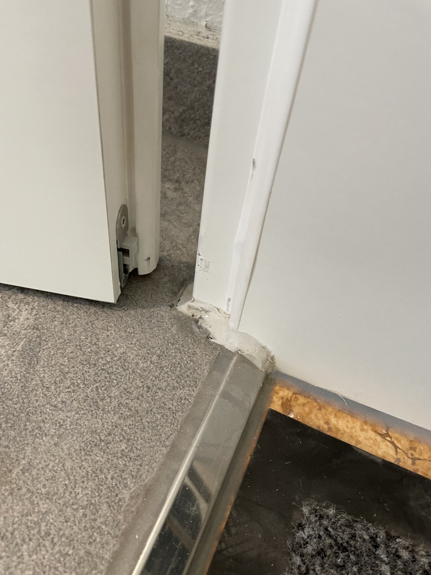 Dass die Bodendichtung an der Zarge diese Spuren macht ist normal.