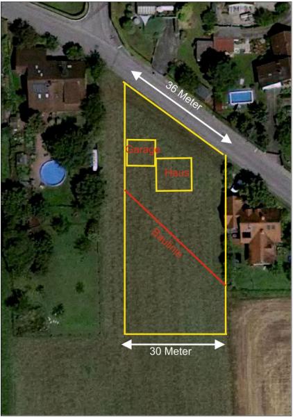 Frage Positionierung Garage: Hallo, wir wollen die Tage ein Grundstück kaufen: Maße: 21*46m, Zugang, Straßenseite (Osten) 21m) Süd-und Nordseite entsprechend 46m.,... -