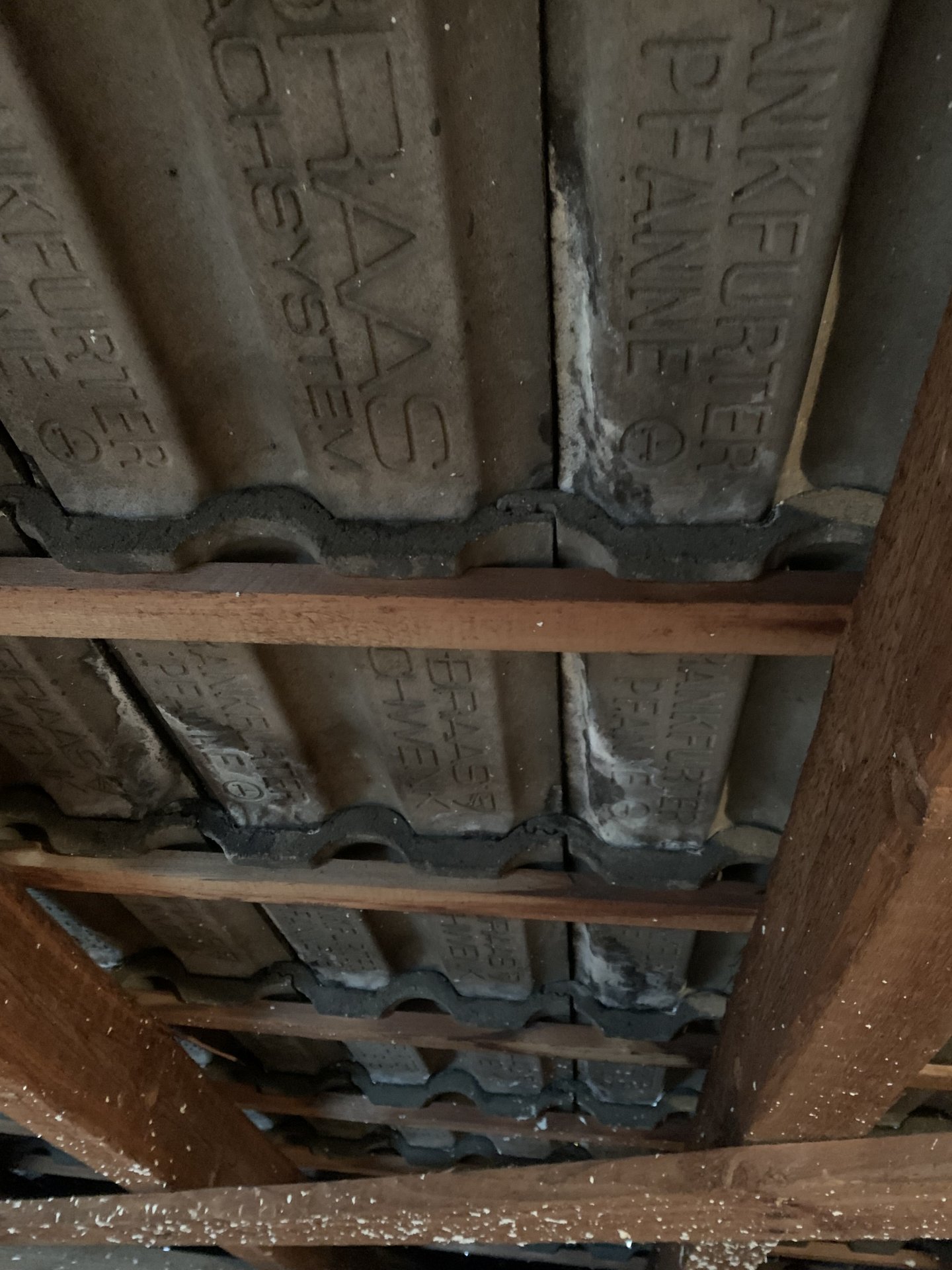 Frankfurter Pfanne auf Unterseite teilweise nass: Hallo, habe vor kurzem bei unserem 33 Jahre alten Dach, das mit Frankfurter Pfanne eingedeckt ist gesehen, dass die Unterseiten der Ziegel bis... -
