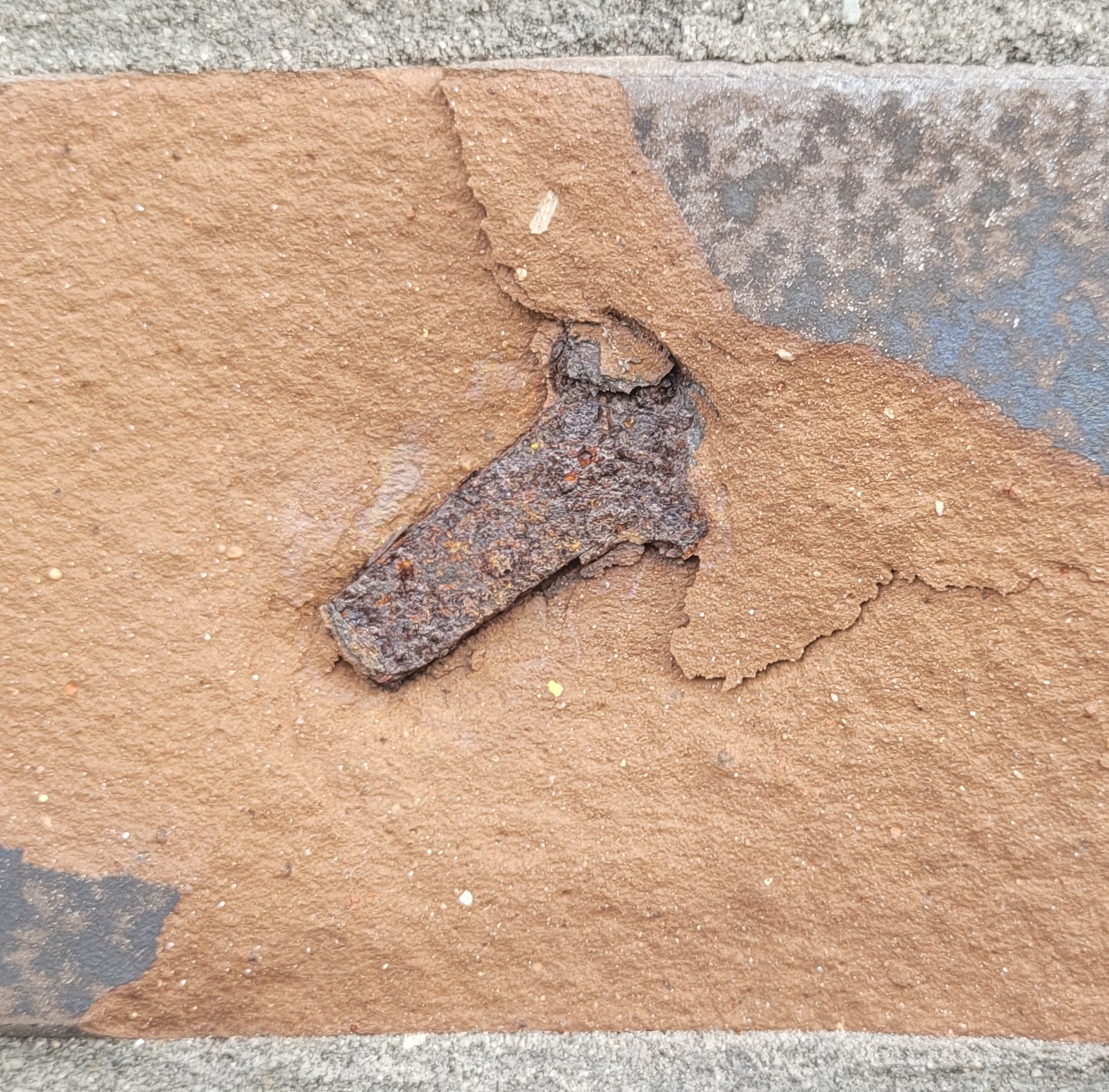 Diskutiere Fremdkörper im Klinker? im Außenwände / Fassaden Forum im Bereich Neubau; Hallo zusammen, s. Foto. Uns ist ein Klinkerstein großflächig aufgeplatzt und es sieht aus als sei ein Metallteil enthalten. Kann dies anhand des...