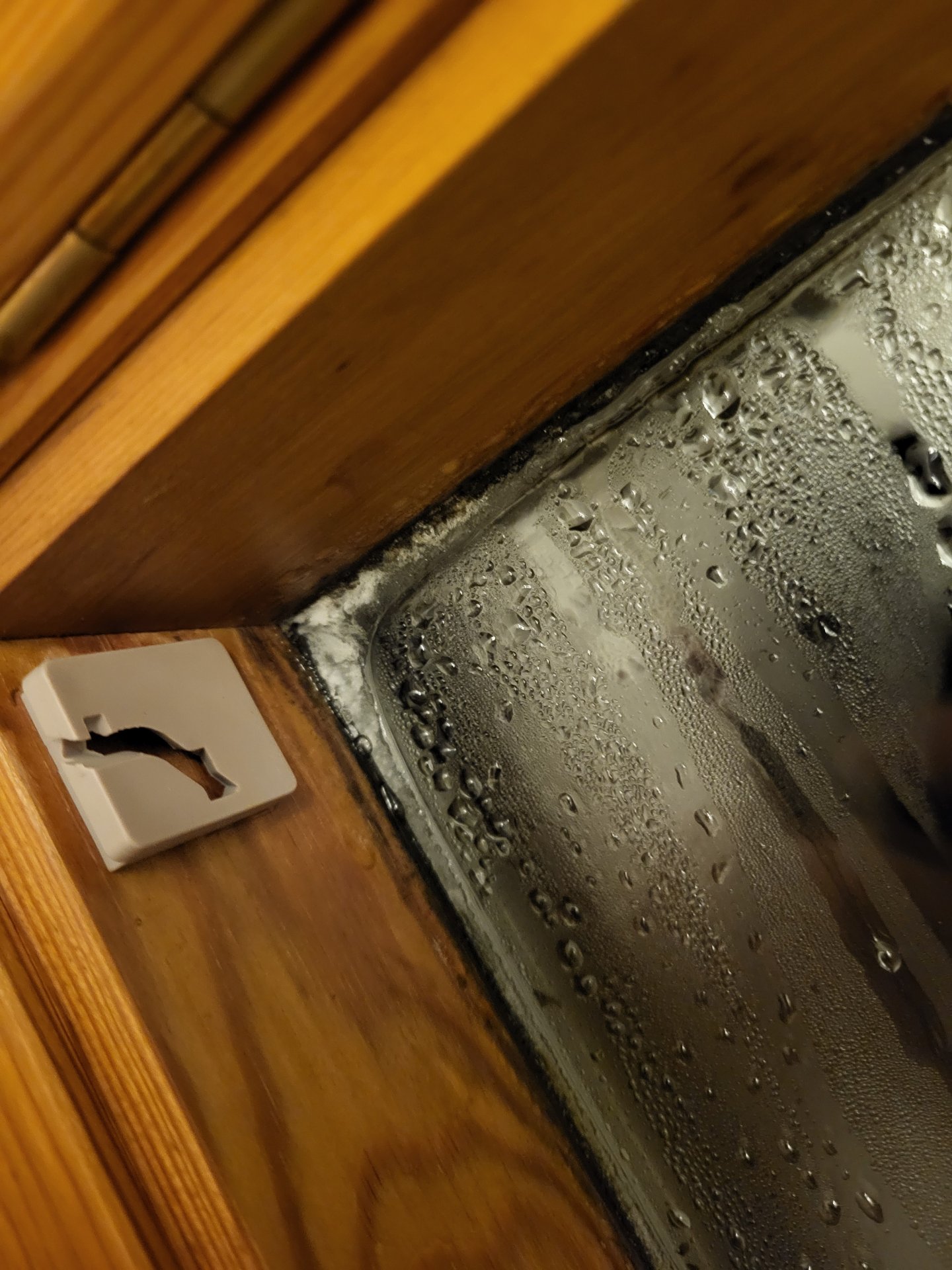 Genau,das Zimmer ist das Gästebad oben. Wir haben in der Wohnung insgesamt 5 Dachfenster, alle sind aus Holz, wobei die die auf der Südspitze liegen , die Fenster machen weniger Probleme als die anderen. Im Schlafzimmer haben wir auch eins, da wäre es eigentlich am wichtigsten dass das Fenster neu gemacht wird , wir wurden aber vertröstet mit einer neuen dichtung und das wir mehr lüften sollen bzw. Wir haben in der Wohnung noch Wärmetauscher, die sollten wir regelmäßig anmachen. Miete zahlen wir den vollen Preis.