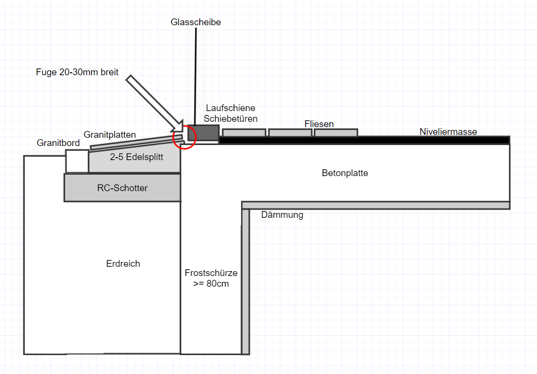 Diskutiere Fuge zwischen Bodenschiene Wintergarten und Granitplatten im Außenanlagen Forum im Bereich Rund um den Garten; Hallo zusammen, wir haben im Frühjahr unsere alte Terrasse (60x30x3cm Granitplatten) abgerissen und einen Kaltwintergarten auf Betonbodenplatte...