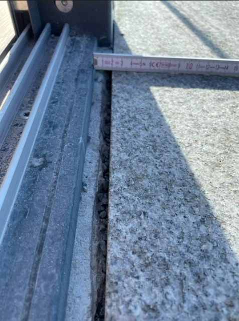 Fuge zwischen Bodenschiene Wintergarten und Granitplatten