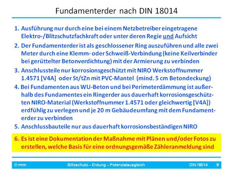 - ringerder unter Bodenplatte mit fundamenterder verbinden,