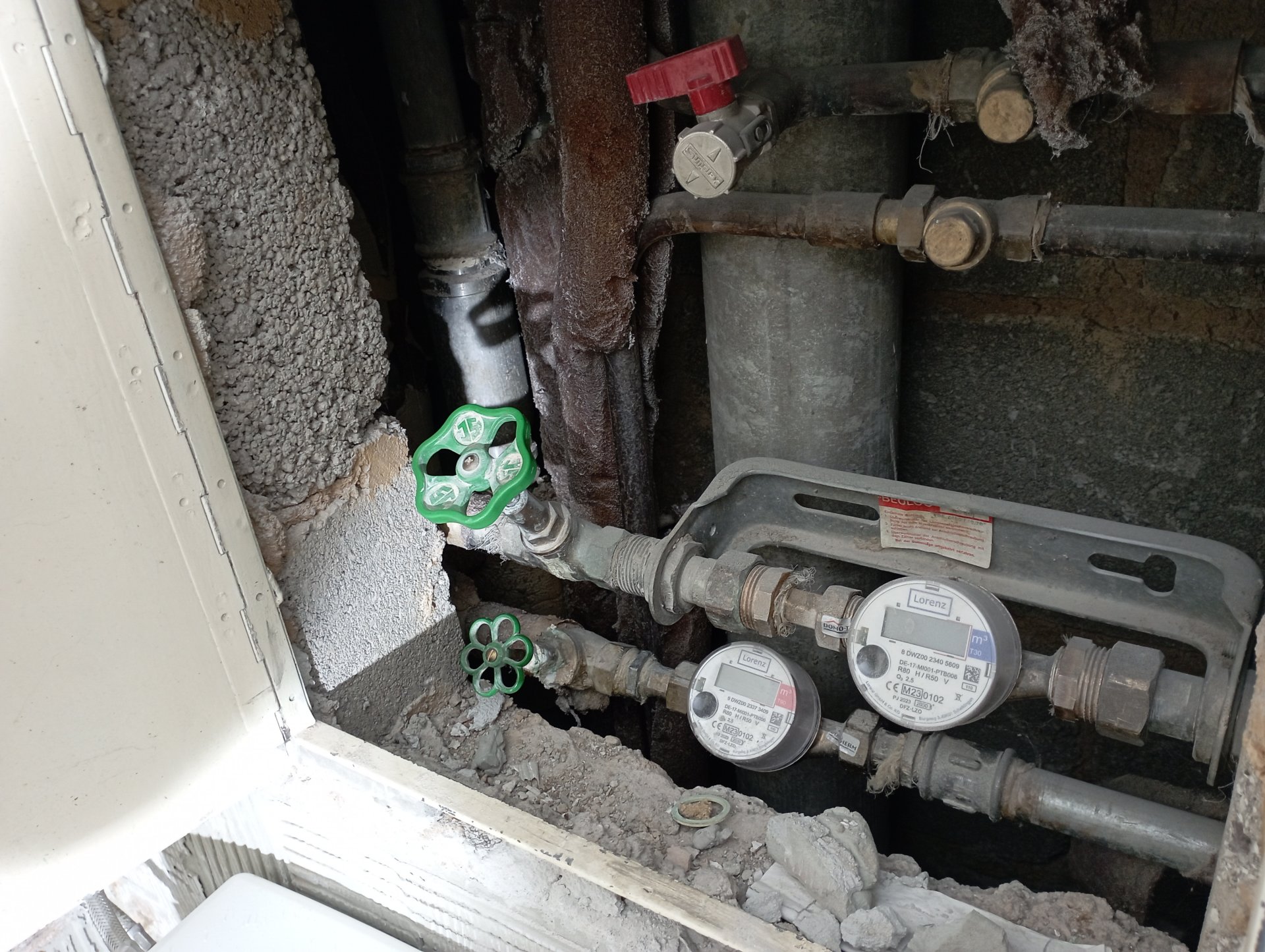 im angehängten Bild seht ihr die Hauptwasserhähne zum Abstellen von Wasser in einer Wohnung (in einem Mehrfamilienhaus, Baujahr 1976).