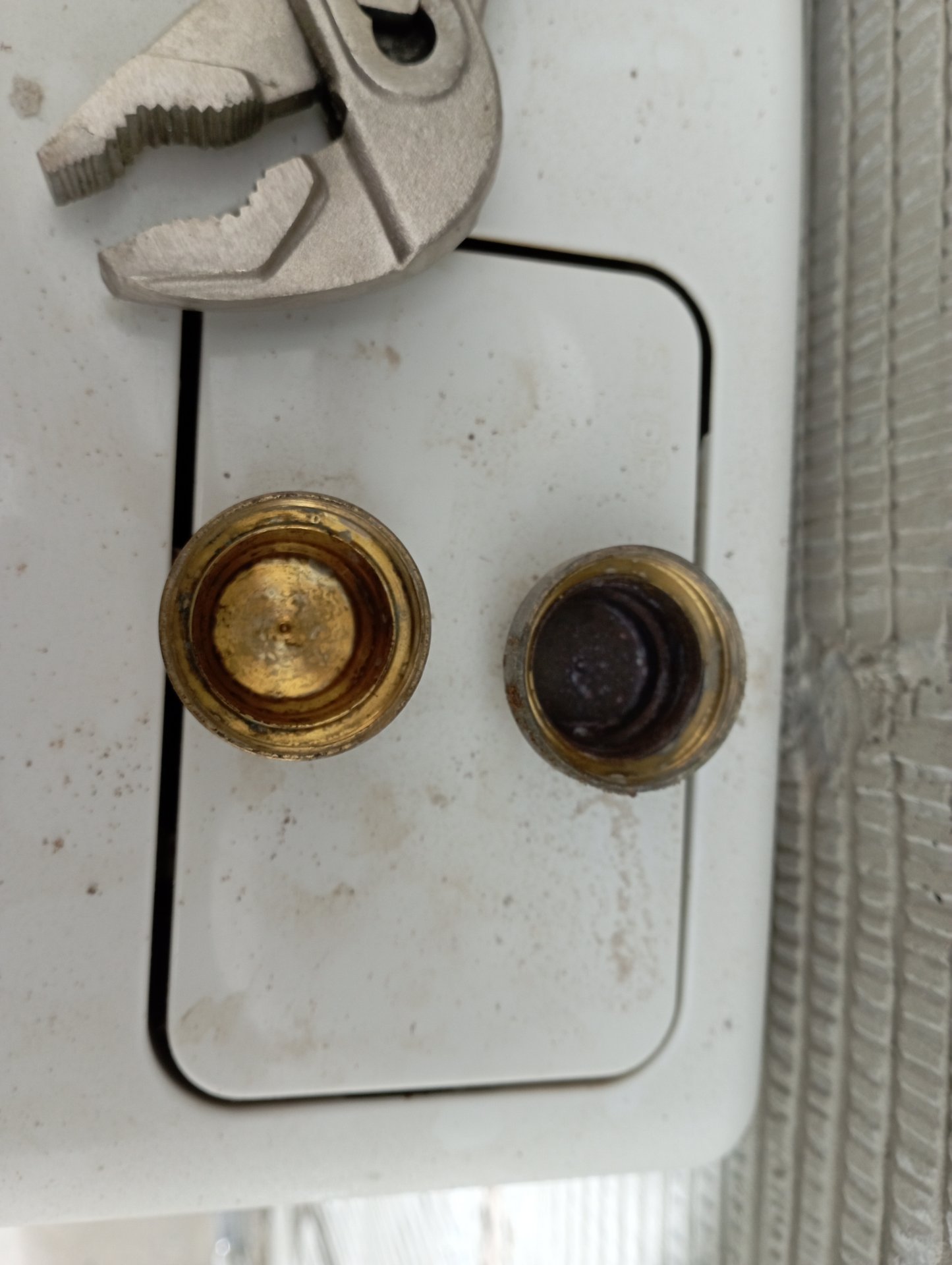 Das mit den beiden Kappen ist interessant. Soll ich mal vorsichtig versuchen diese zu demontieren? Vielleicht ist wie bereits gesagt eine Art Absperrventil darunter.