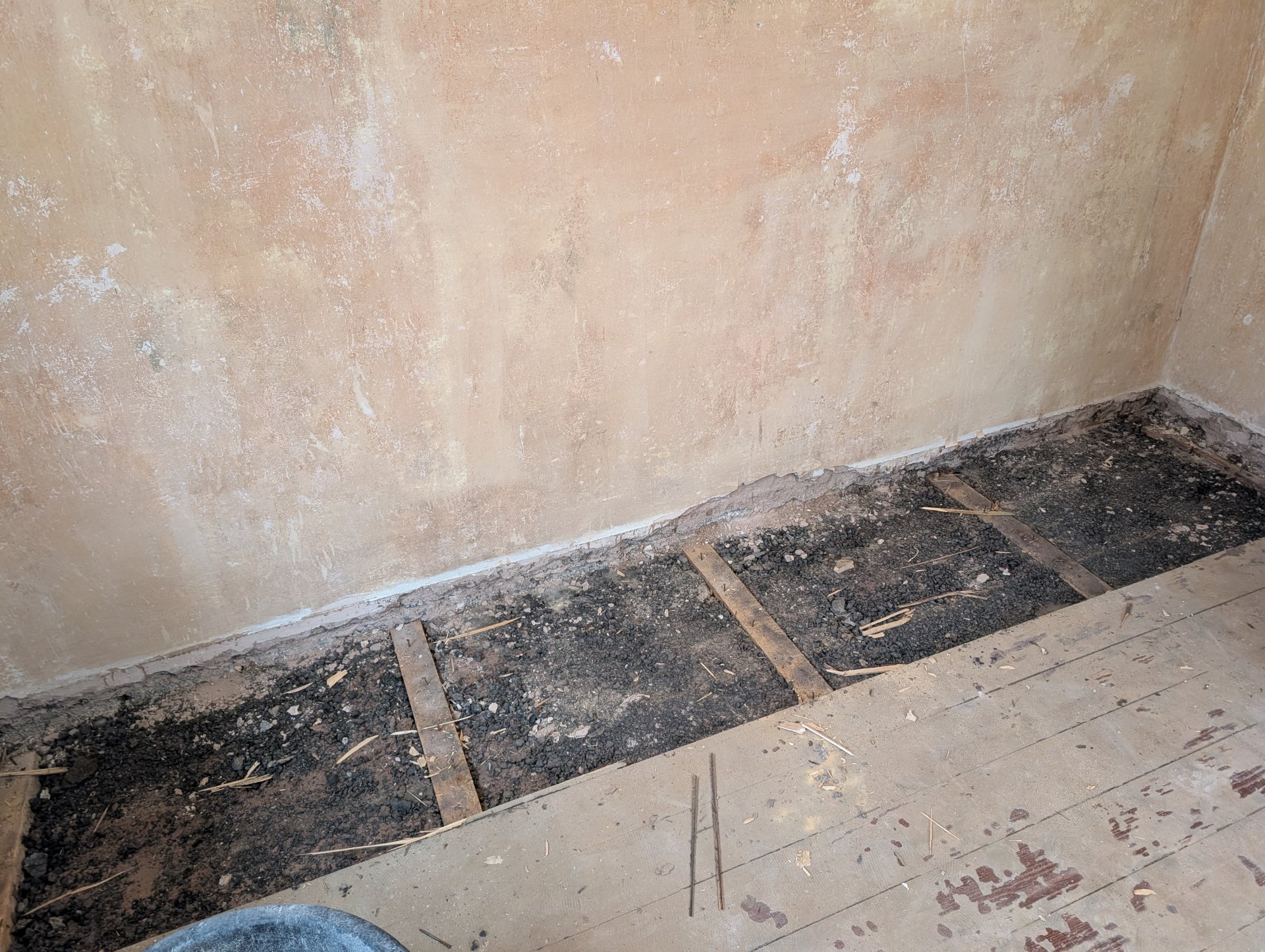 Neuer Estrich bei Wanddurchbruch und Abriss mit Fußbodenheizung und Fliesen