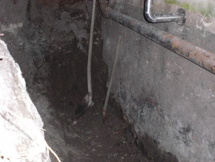 Denken Sie bei solchen Erdarbeiten auch daran, daß bei mehr als 1,25 m Tiefe das Erdreich abgestützt oder abgeböscht werden muß.