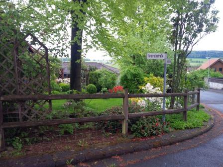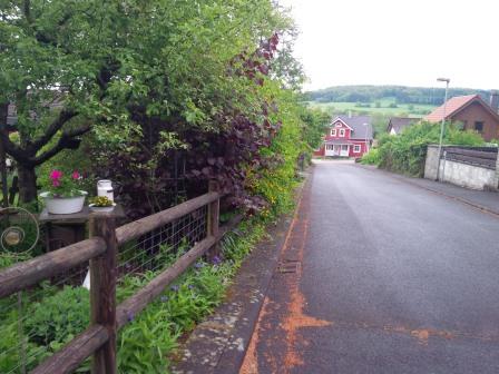 dann mal zwei Bilder die vielleicht zeigen wie dicht Baum und Hecke am Zaun / geplanten Mäuerchen stehen werden.