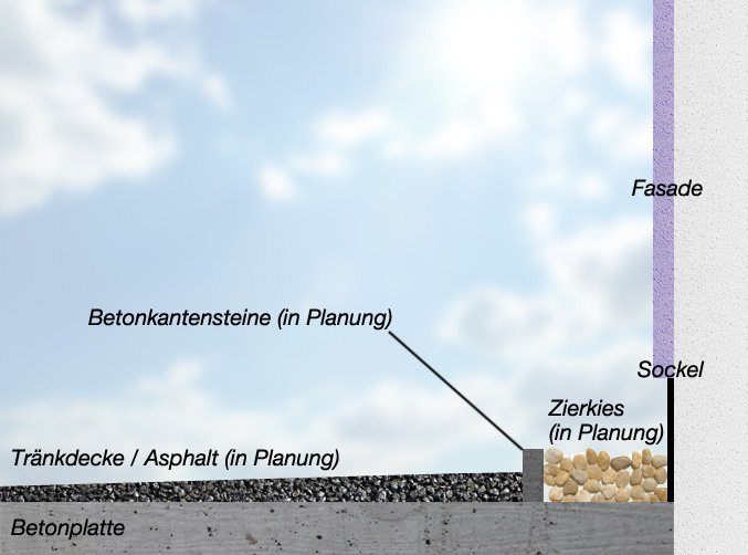 Thema: Gehweg und Spritzschutz machen auf einer Betonplatte