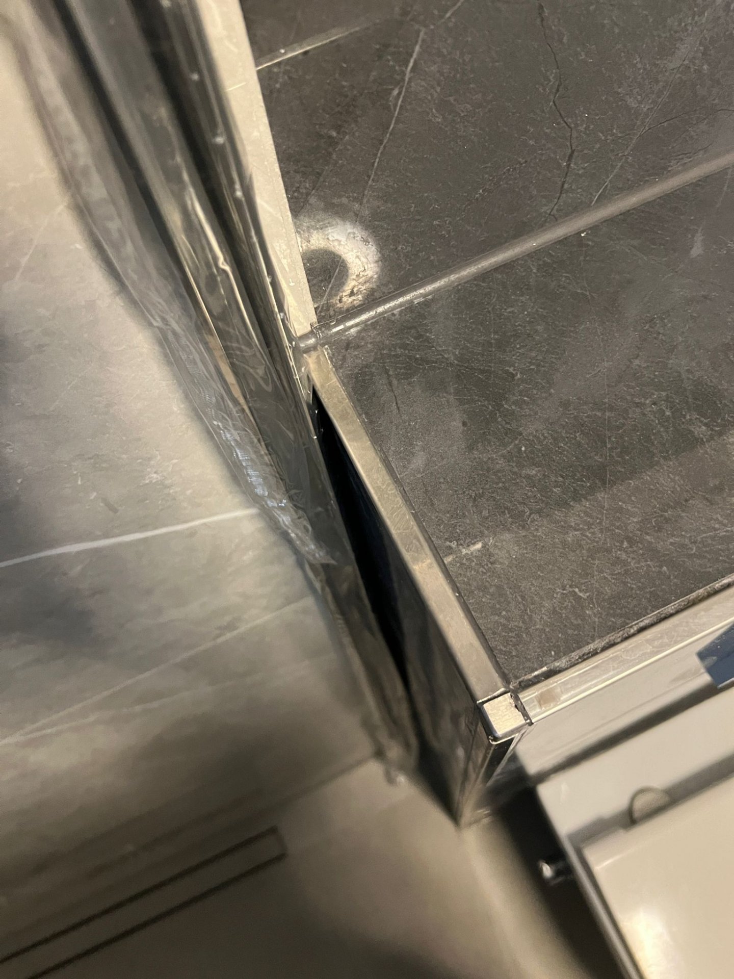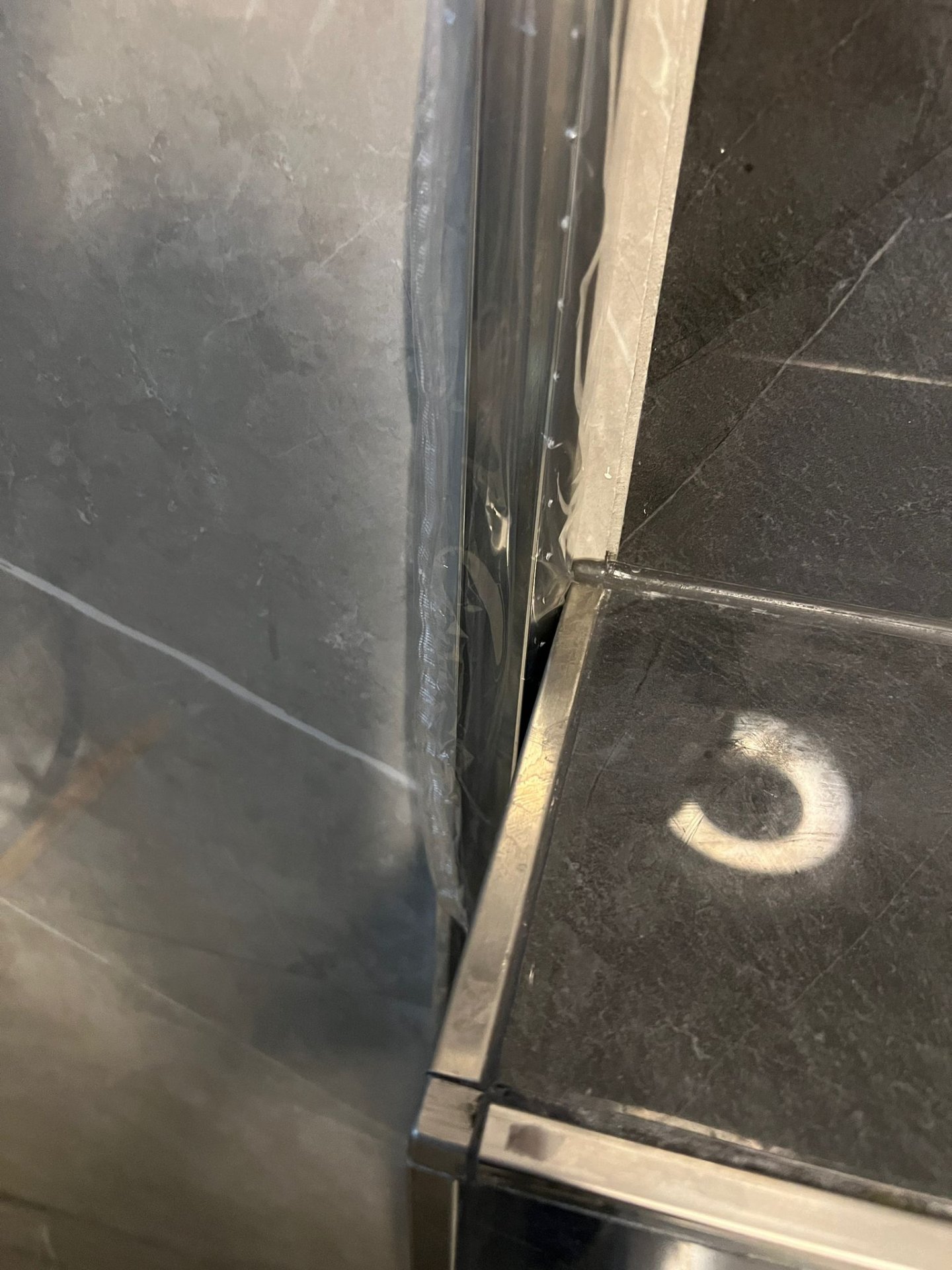 Jetzt ist das Problem, dass zwischen Glasscheibe und Vorwandkante etwas Luft (ca. 2cm) ist.