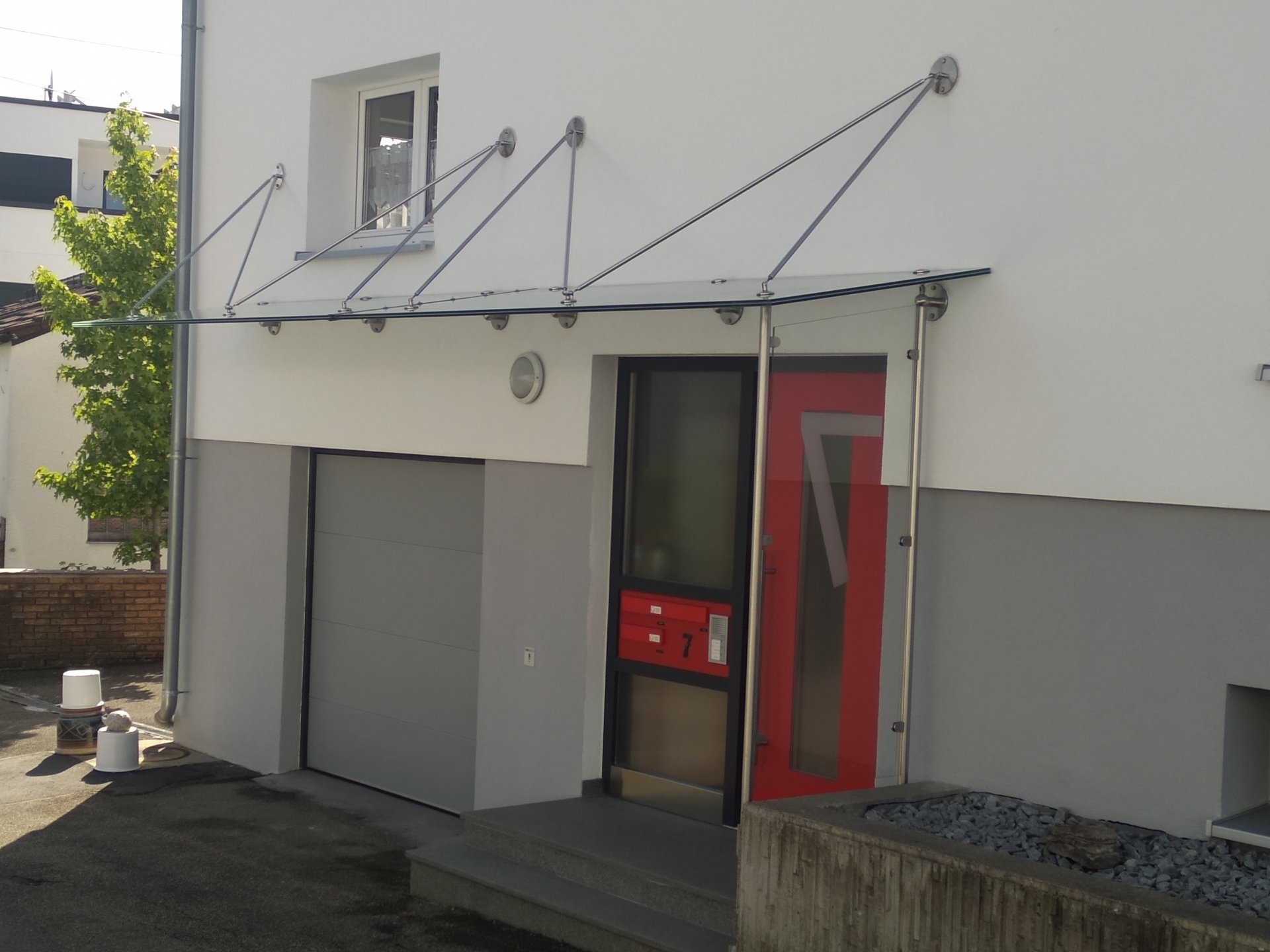 Neigung Glasvordach über Eingangspodest