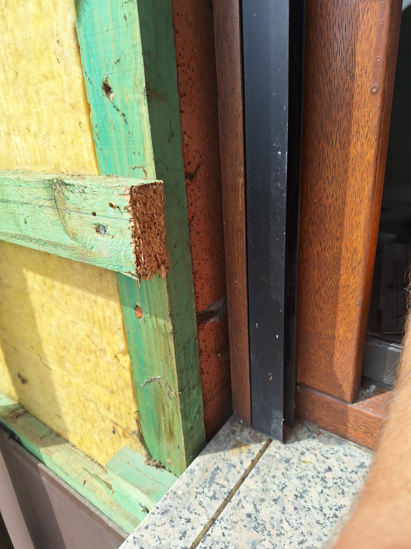 Angefügt erkennt man auf den Fotos von aussen, das Mauerwerk, dann kommt zwischen Fensterrahmen und Mauerwerk nur Bauschaum.