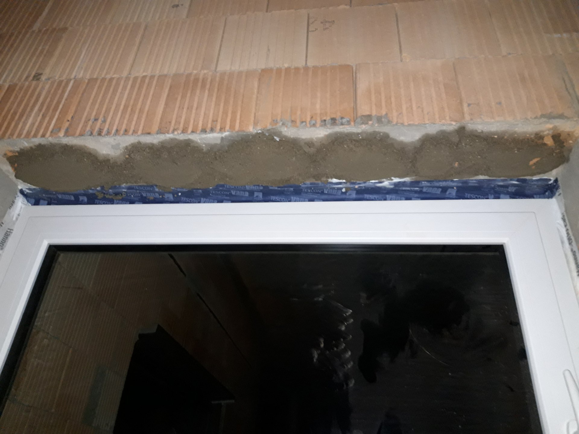 Jetzt ist mir aufgefallen, dass zwischen Fenster und Mörtel eine leere Stelle ist.