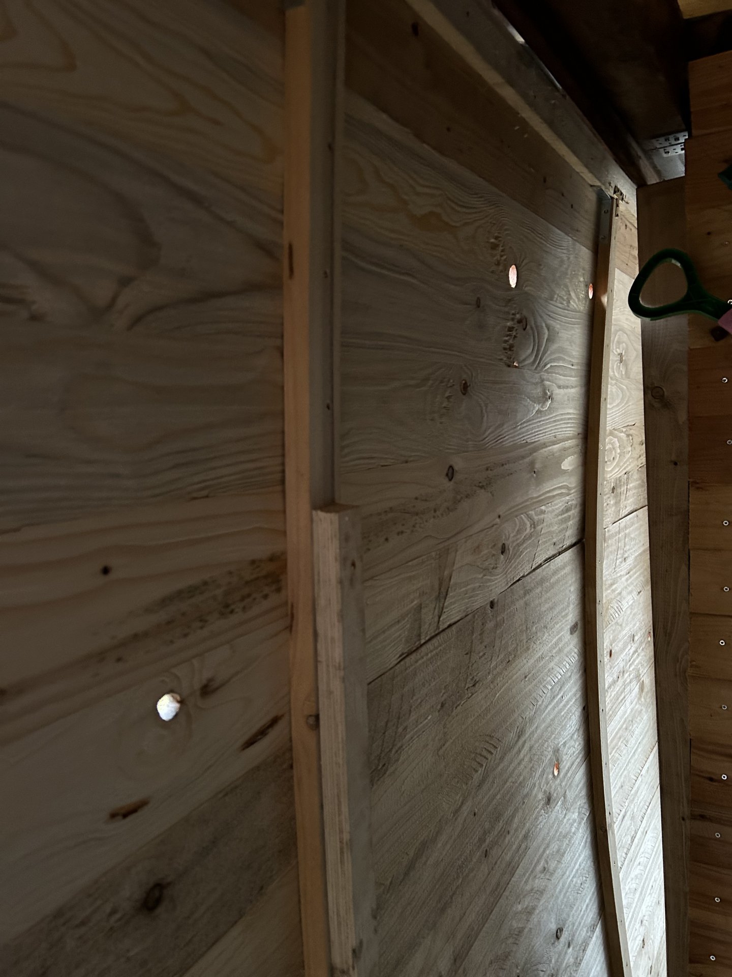 Das innere Senkrechte (!) Kantholz ... und Außen waagrecht Bretter...alles schön Trocken Press zusammen gebaut.