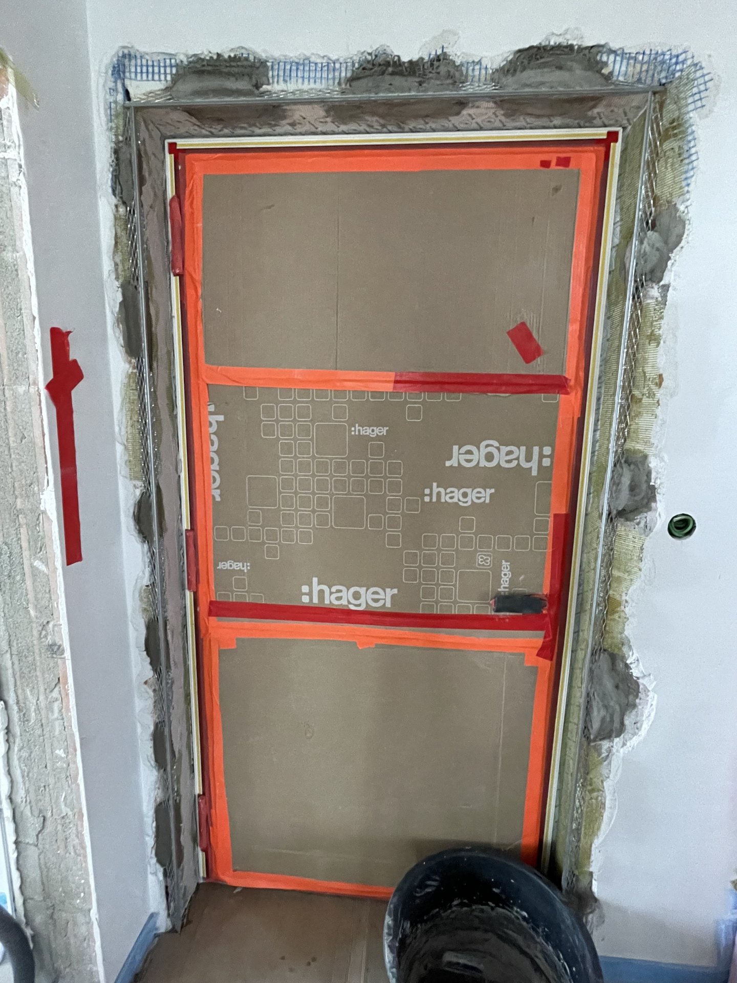 Haustür anputzen: Hallo, bei mir ist die Haustür noch nicht eingebaut, aber der Verputz der Fassade hat begonnen. Der Verputzer sagte, dass bis zum Feinputz die... -
