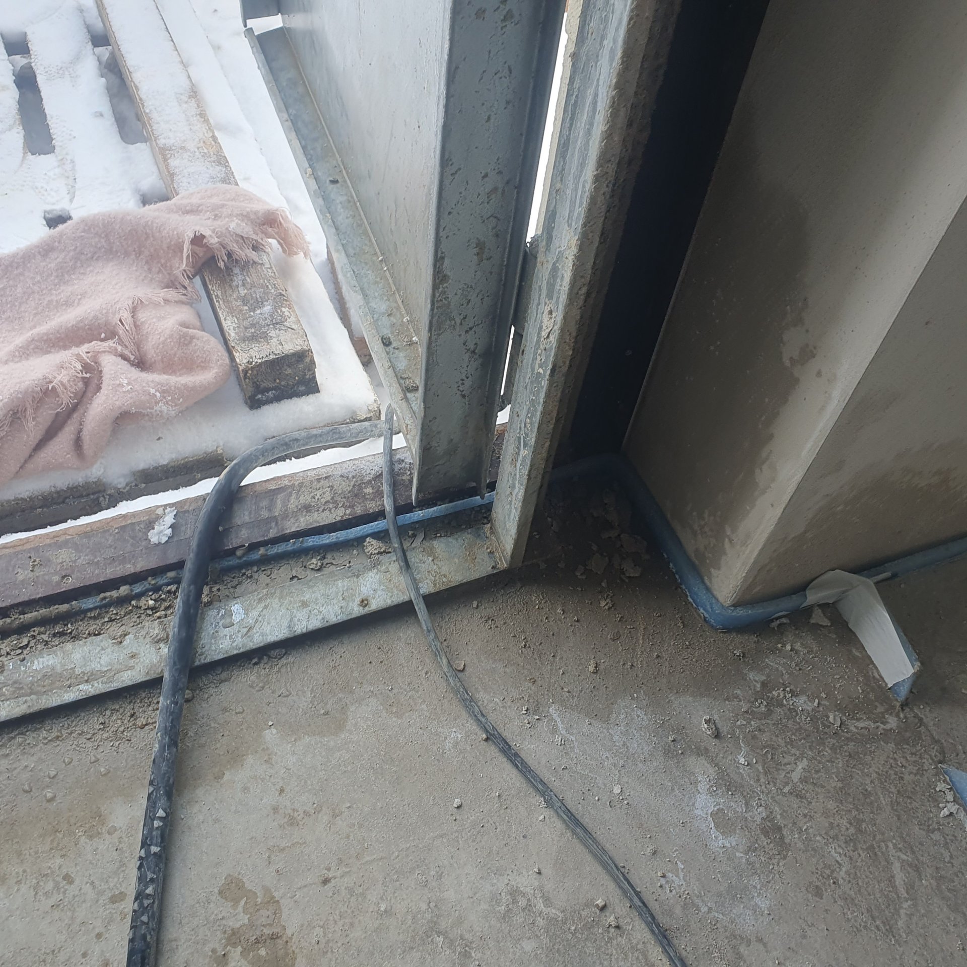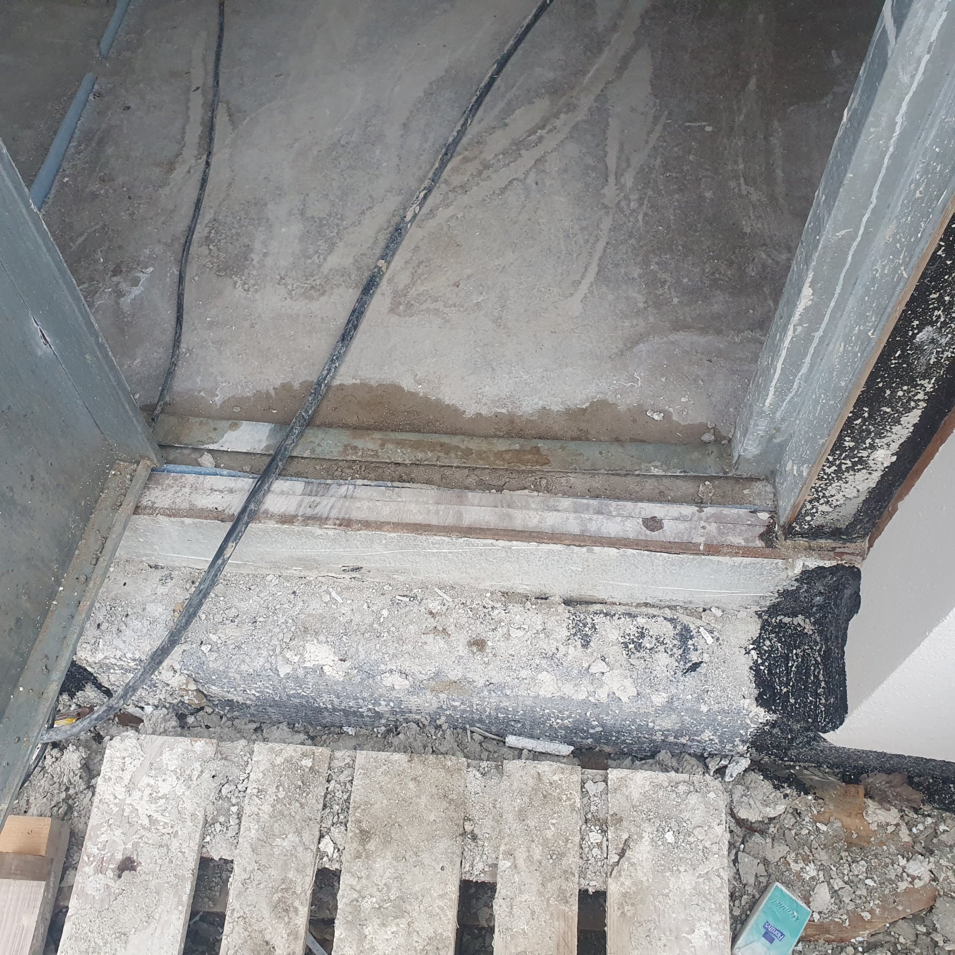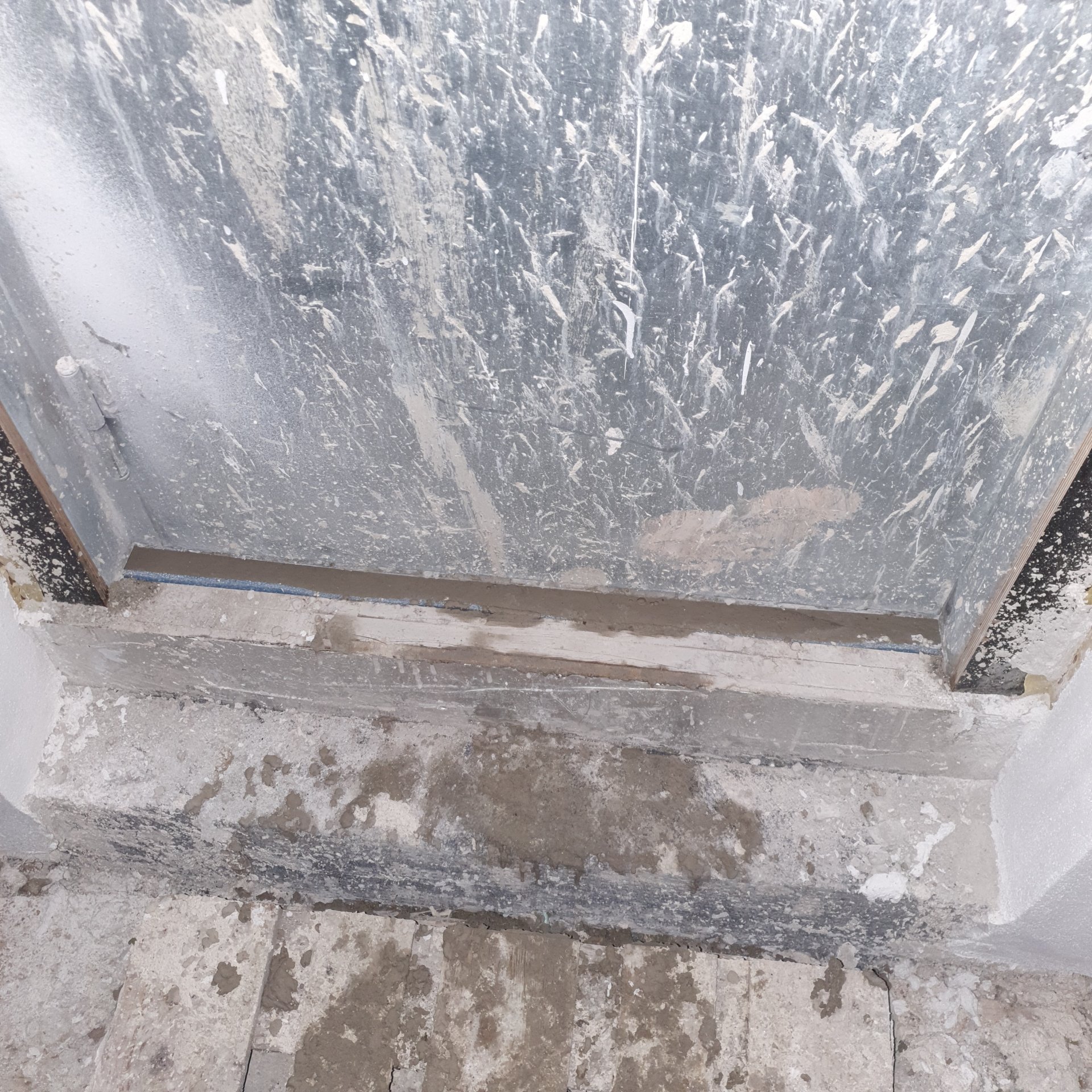 Angeblich wird demnächst erst gefliest und dann die Tür montiert oder erst montiert und dann gefliest je nach dem. Estich kann ich mit dem Finger 3-4cm tief eindringen.