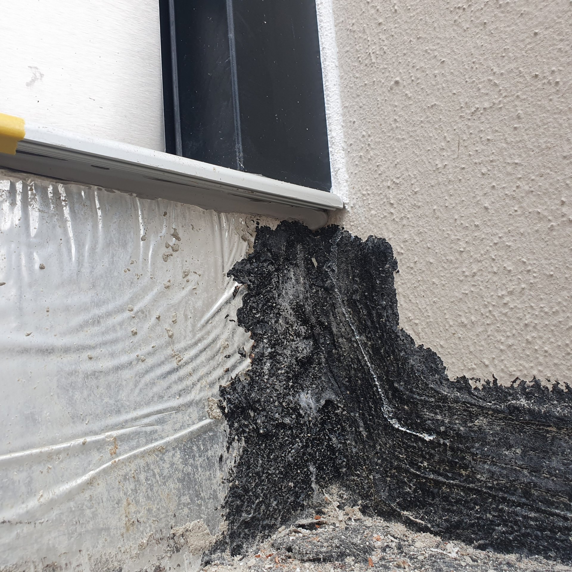 Aussen wurde rund um die Tür Acryl gespritzt... Hab das bisher noch nicht so gesehen... Ist das wieder Murks? Die Fuge muss ich ja alle Zeit erneuern
