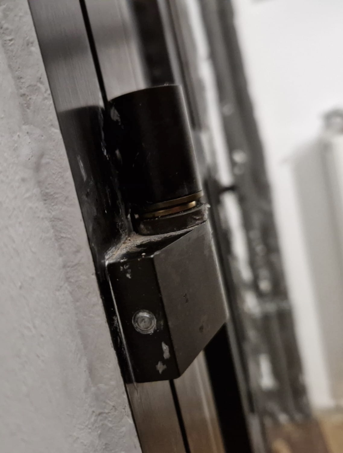 Leider schleift die Spitze unter der Klinke auf dem Boden. Haben im Internet schon nach den Möglichkeiten geschaut die Tür ein wenig einzustellen.