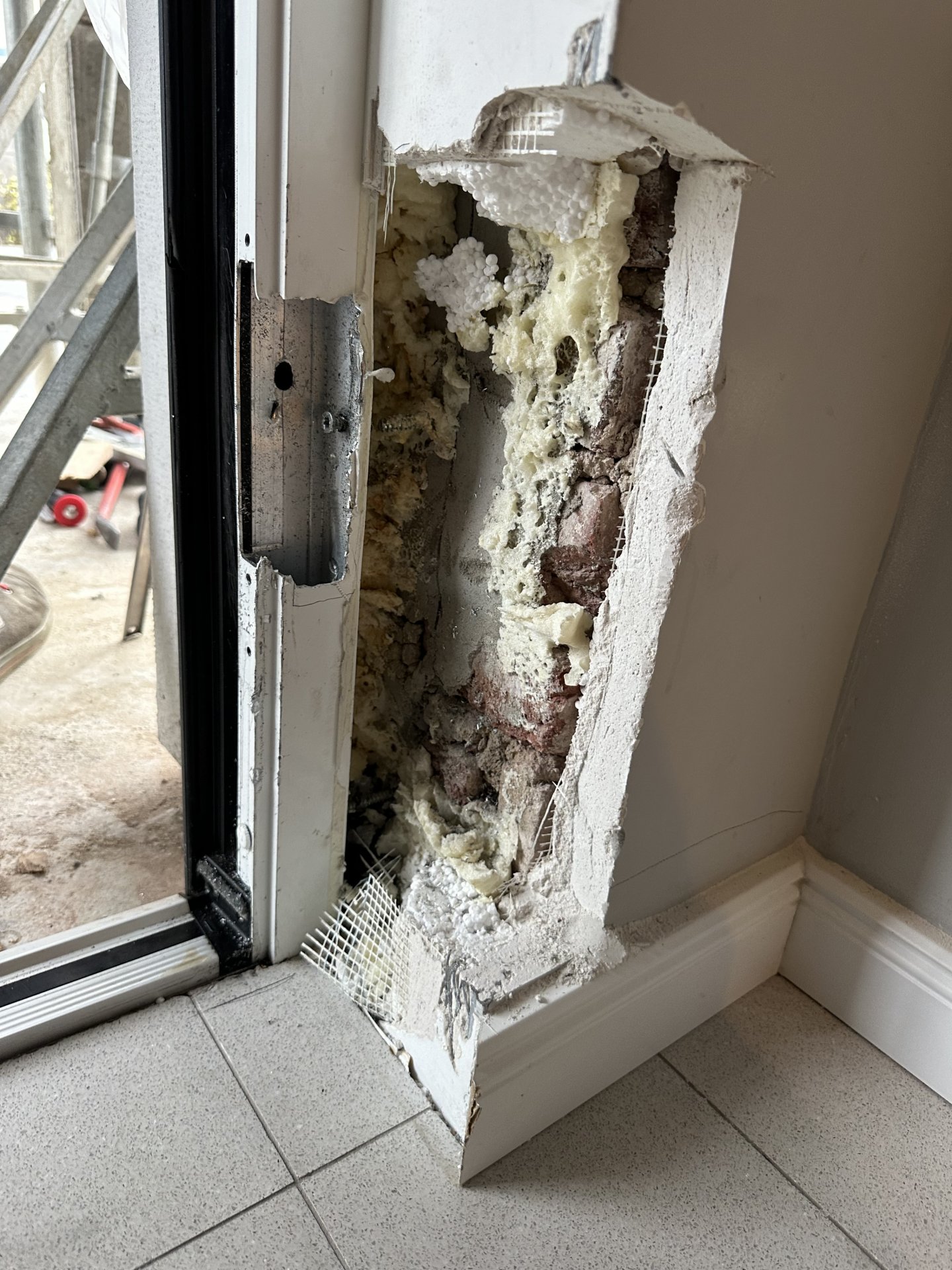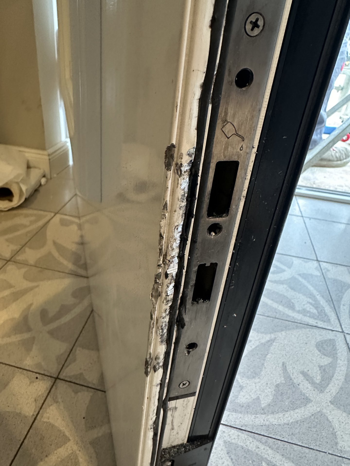 Der Hersteller sagte das hatte er noch nie und wir müssten die Tür komplett ausbauen, also dem gesamten Mauerwerk raus. Innenputz/Aussenputz eäre alles kaputt.