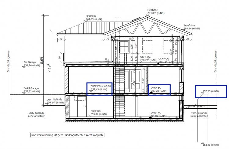 Hebeanlage bei Neubau notwendig?: Wir haben ein Hanggrundstück, die Strasse ist der höchste Punkt. Die Kanalsohle liegt ca. 30cm tiefer als OK Fussboden im EG, Keller ist nicht...