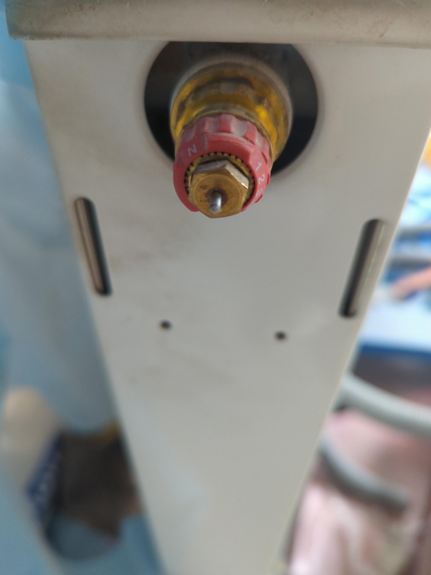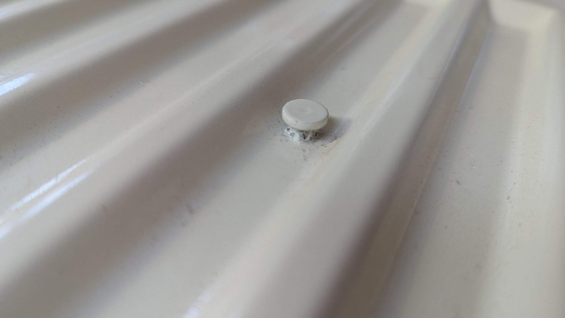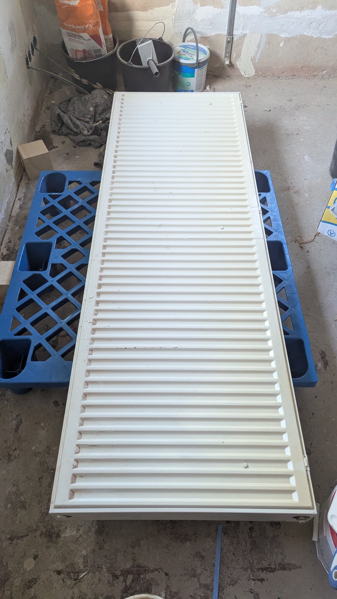 Diese soll nun wieder an die Position, wo der Alte war. Allerdings wollte ich ihn dafür drehen, dass ich Anschlüsse und Ventil links habe. Leider ist dieser auf der Rückseite ziemlich vergilbt. Da hilft wohl nur neu streichen.