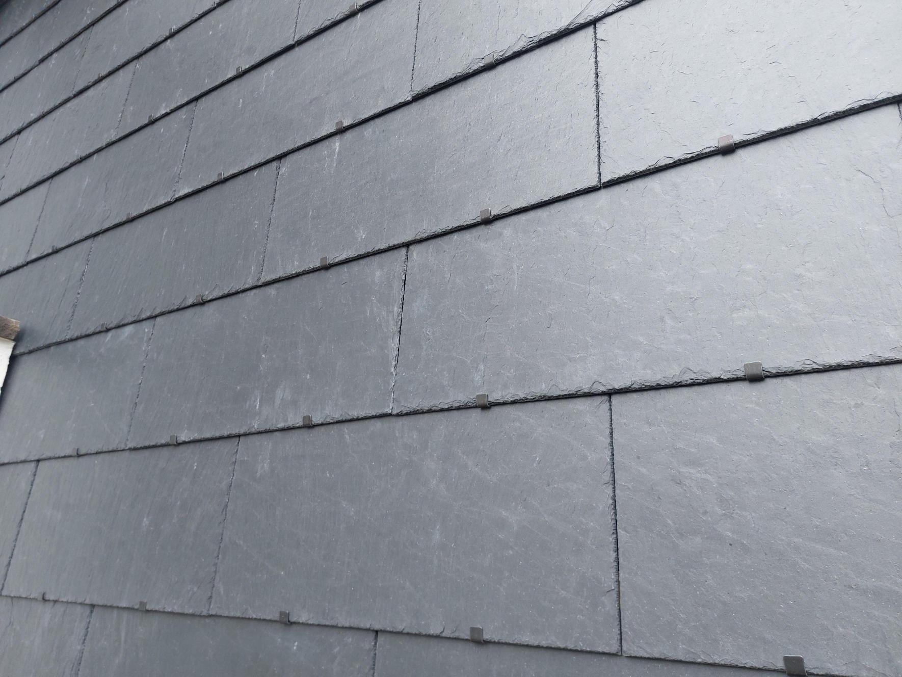 Das ist normal und verschwindet mit der Zeit. Das kommt daher, wenn Schiefer über Schiefer reibt. Das sind quasi Kratzer. Das kommt vom bearbeiten im Werk, beim Transport zur Baustelle, beim Stapeln usw. Ich wette, wenn die Platten nass sind, siehst du davon nichts mehr. Mach dir doch mal den Spaß und reibe eine der Platten die man nicht direkt sieht mit Wasser und einem weichen Tuch ab. Ich bin mir sicher, dass diese dann schon deutlich besser aussieht. Dann also abwarten und Tee trinken :-)