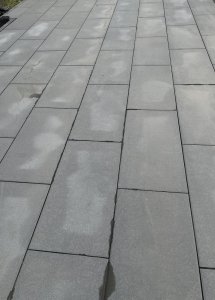 Granit Außentreppe helle Flecken und Fugen lange feucht