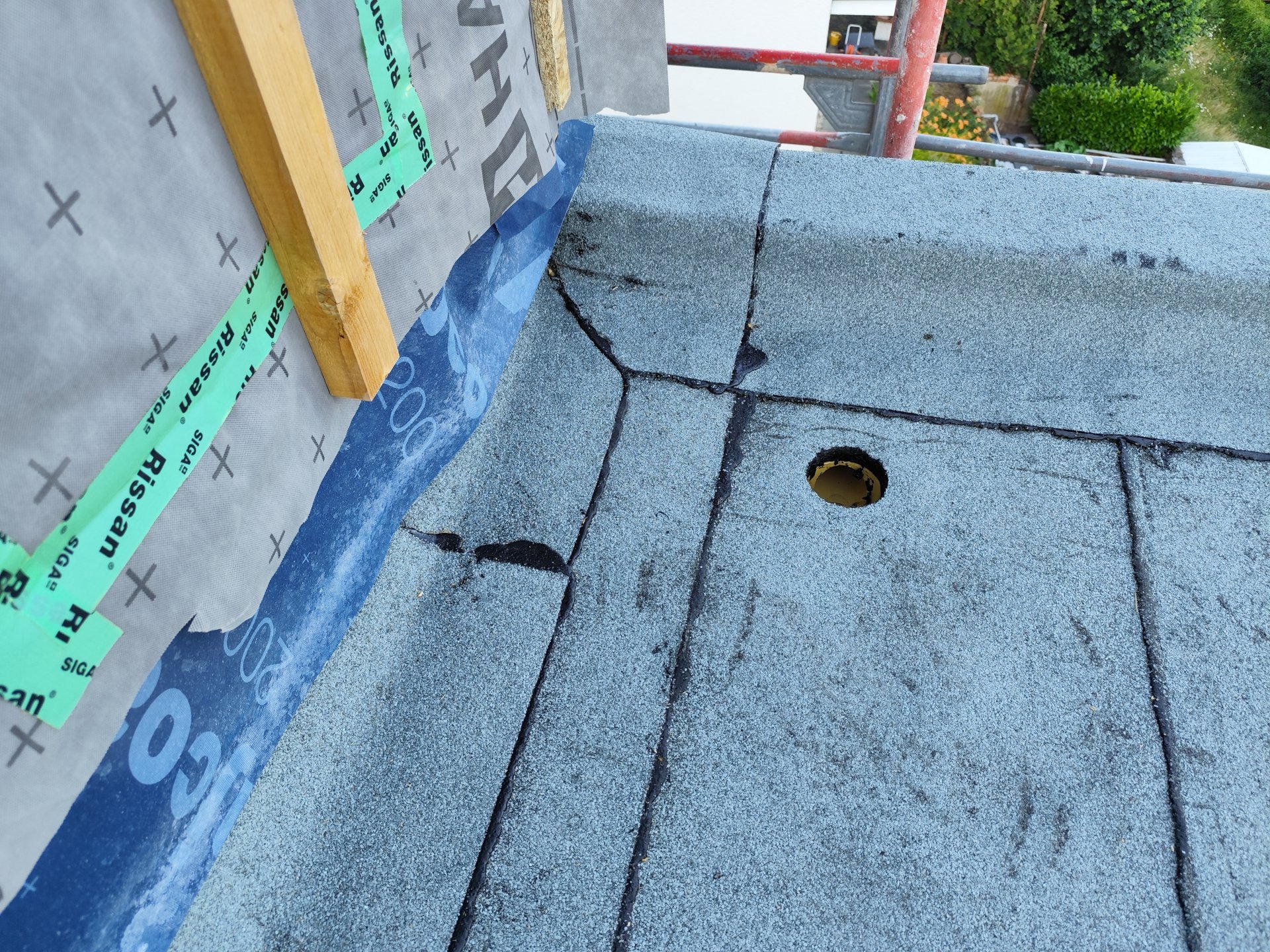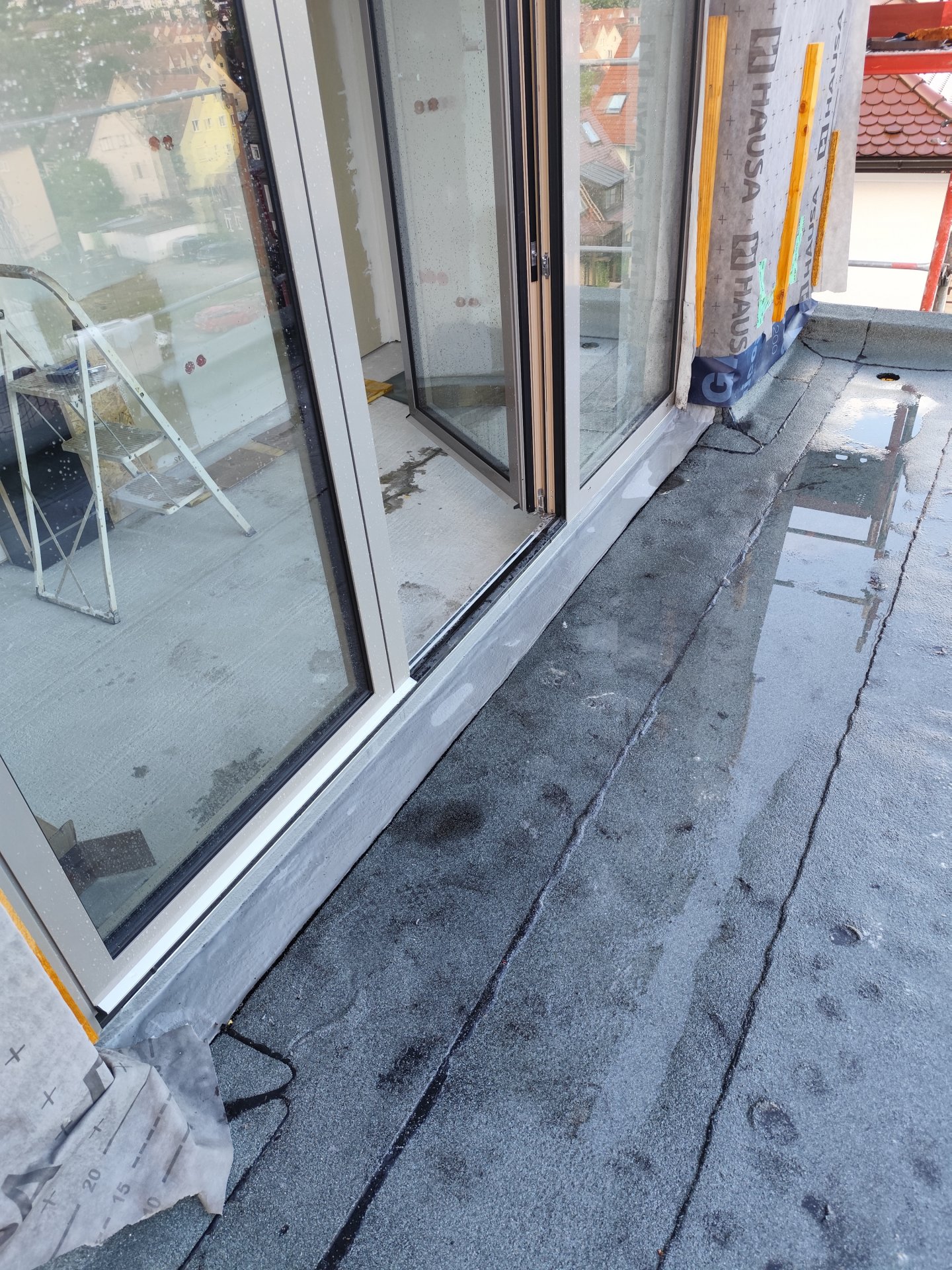 - andere Gewerke (Fassadenbauer?) haben die Abdichtung ohne Schutzmaßnahmen bei sehr warmen Außentemperaturen betreten?