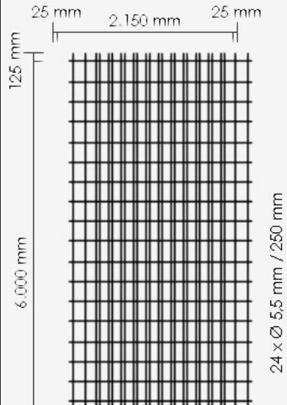 + 3 Zusatzeisen 14mm alle 11,5 cm , darauf stehen auch die Dachstiele